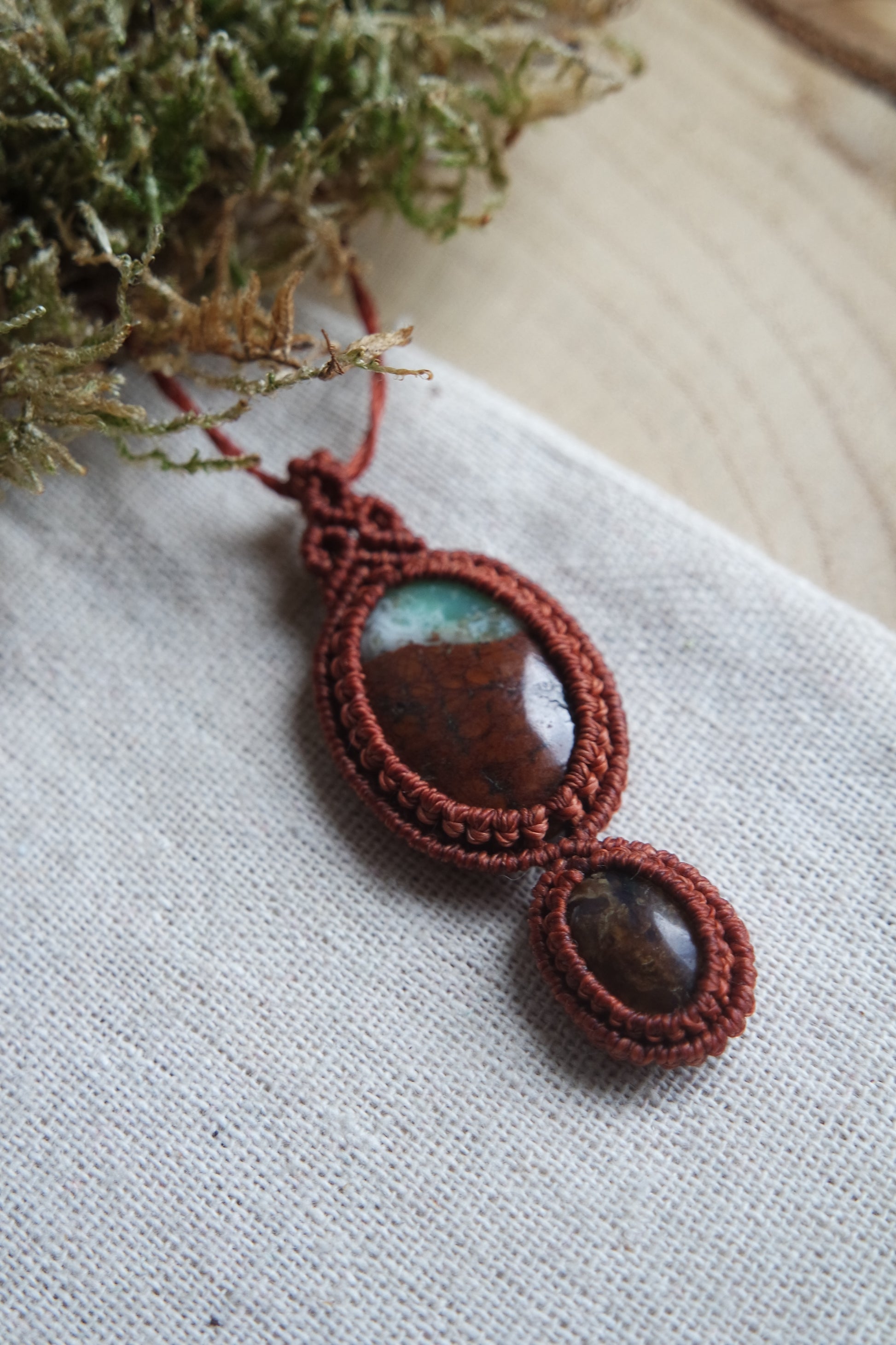 Der Makramee-Schiebeknotenverschluss ermöglicht es dir, die Länge der Kette individuell anzupassen. Dieses Stück ist ein Unikat, das mit Hingabe in langer Arbeit entstanden ist.