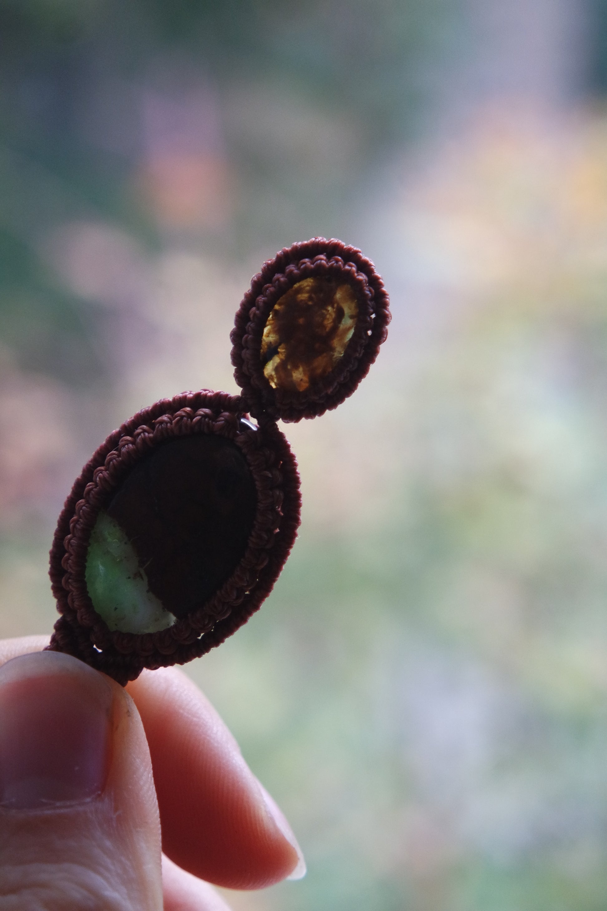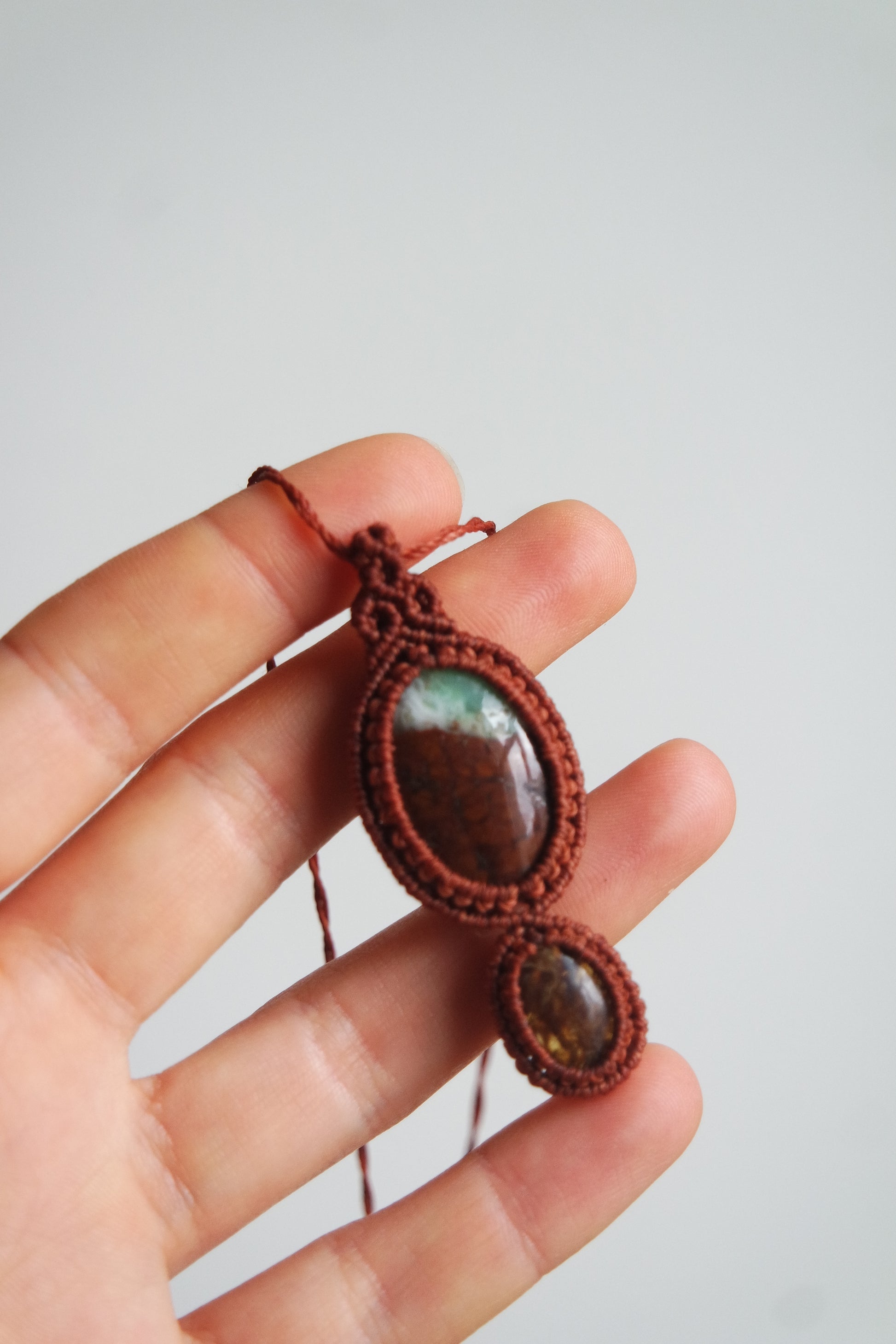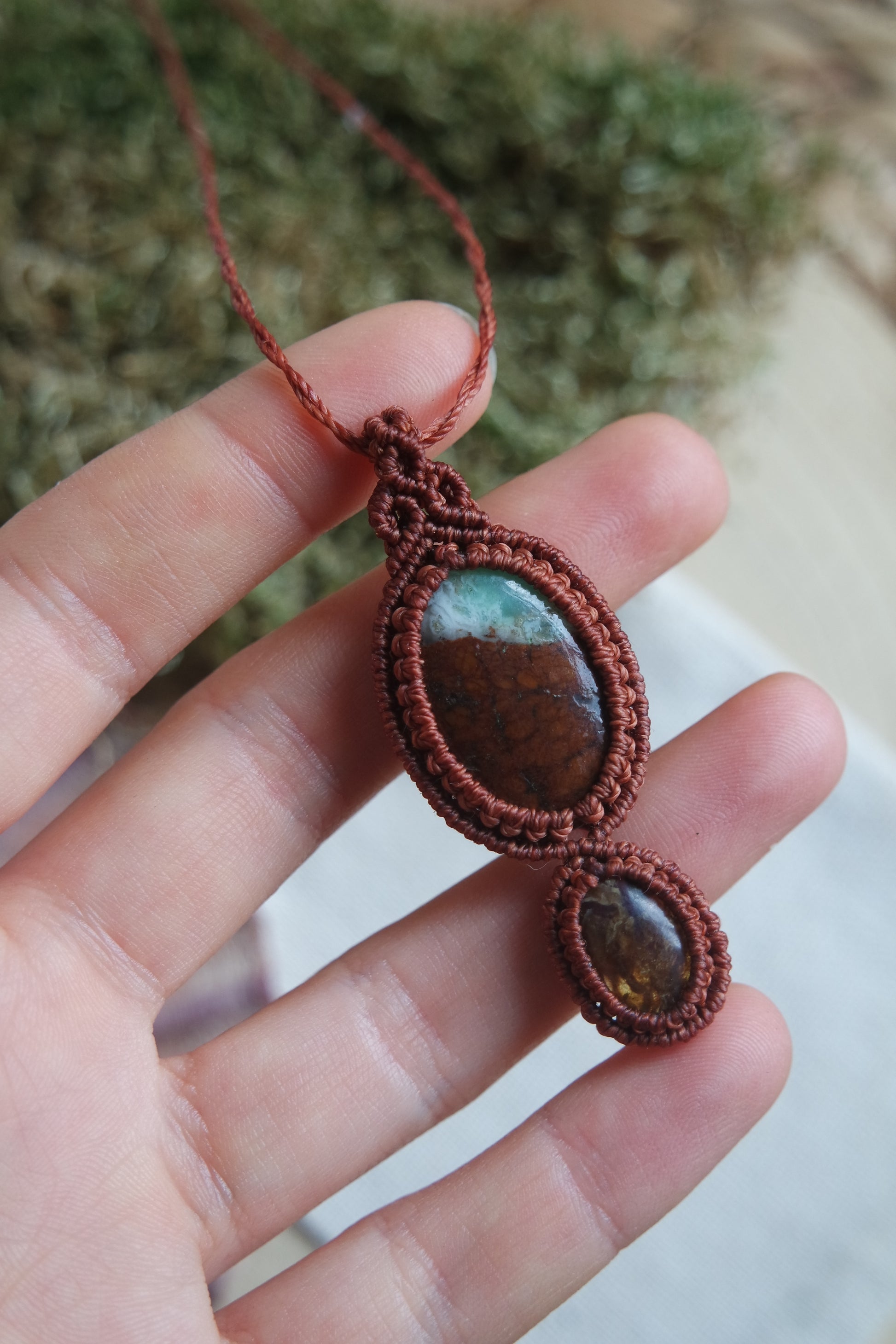 Chrysopras & Bernstein Makramee Kette ~ LICHTQUELLE