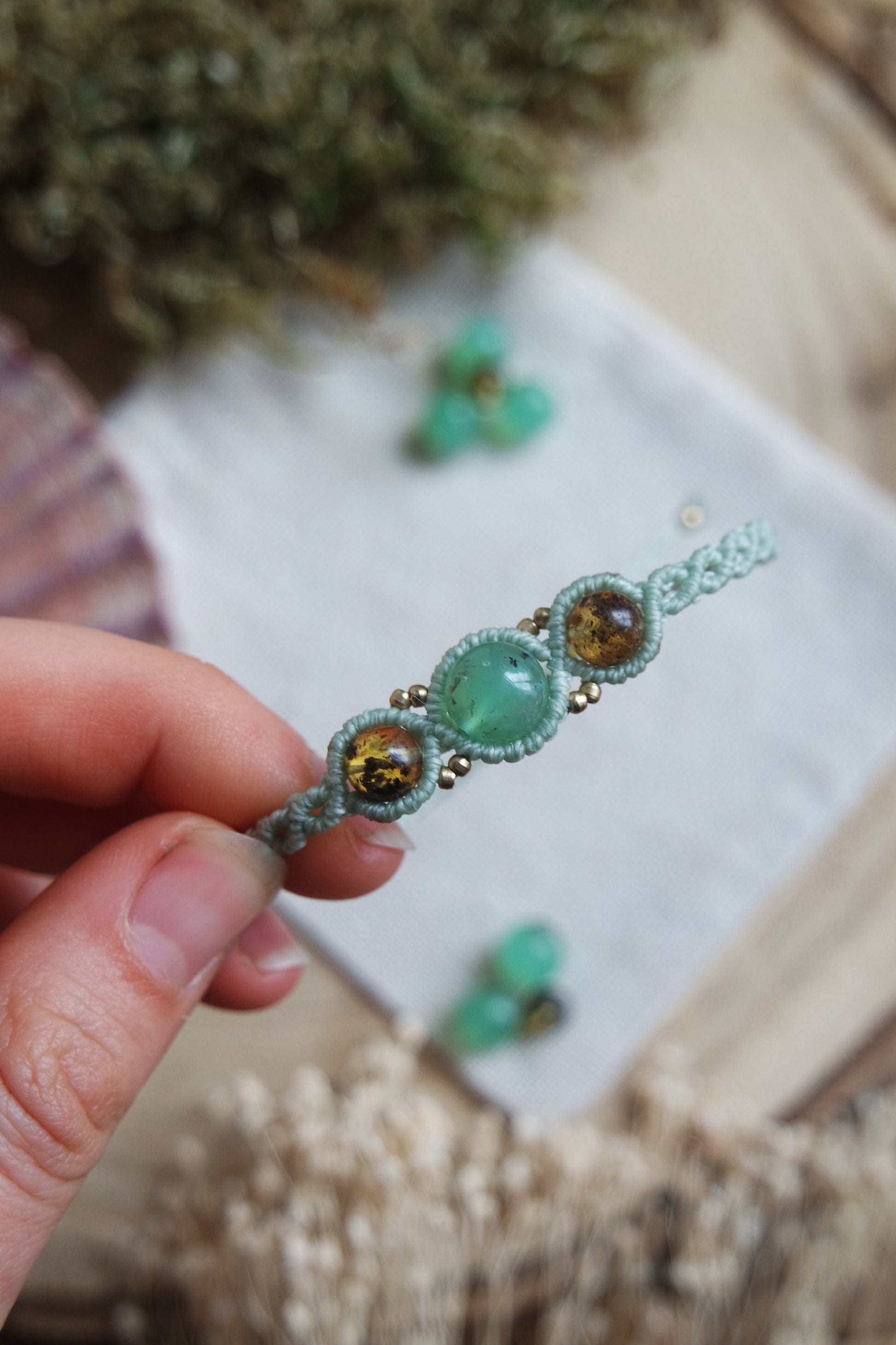 Crysopras & Bernstein Makramee Armand ~ GOLDWALD
