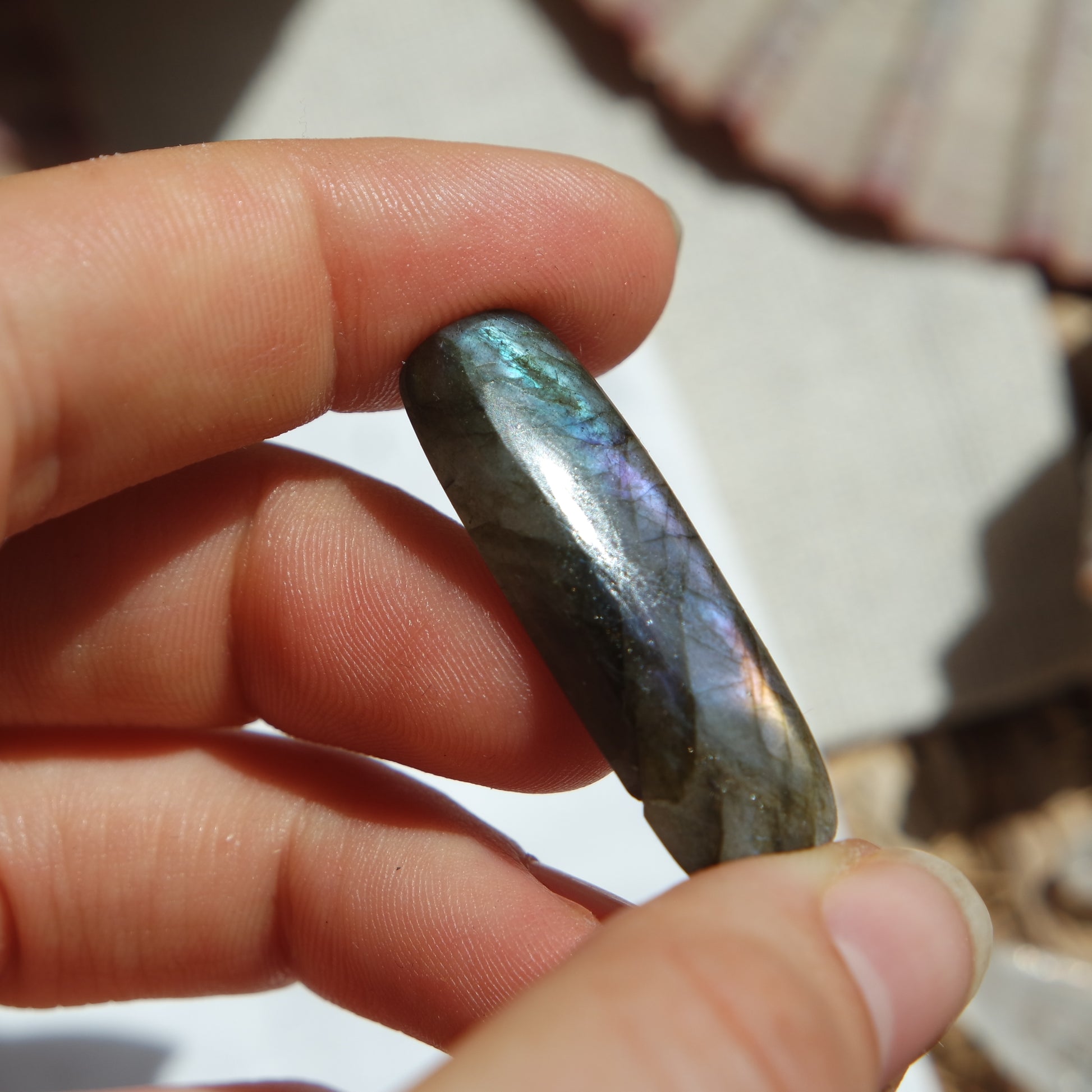 Labradorit wird oft mit Schutz, Intuition und spirituellem Wachstum in Verbindung gebracht. Dieser faszinierende Stein mit seinen schimmernden, regenbogenartigen Farben wird als besonders kraftvoll für die Förderung von innerer Klarheit und spirituellem Bewusstsein angesehen. In vielen spirituellen Traditionen wird Labradorit als Stein verwendet, der negative Energien abwehrt und den Träger mit positiven, schützenden Schwingungen umgibt. - Weichheit: Labradorit hat eine Mohshärte von 6 bis 6,5 und gehört damit zu den mittelharten Edelsteinen. Er ist relativ widerstandsfähig, aber dennoch anfällig für Kratzer und Beschädigungen, weshalb er mit Vorsicht behandelt werden sollte.