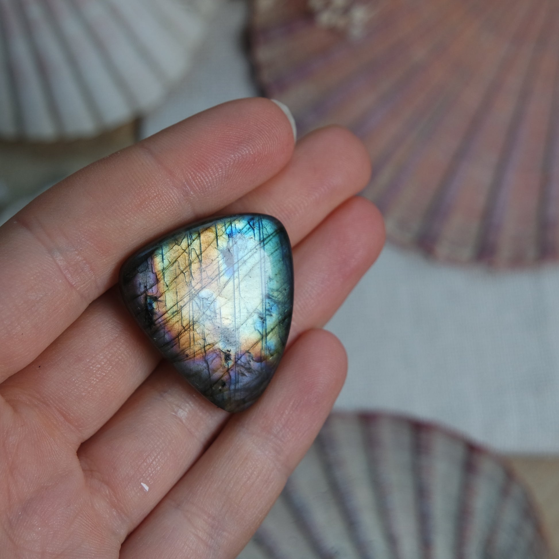 Labradorit wird oft mit Schutz, Intuition und spirituellem Wachstum in Verbindung gebracht. Dieser faszinierende Stein mit seinen schimmernden, regenbogenartigen Farben wird als besonders kraftvoll für die Förderung von innerer Klarheit und spirituellem Bewusstsein angesehen. In vielen spirituellen Traditionen wird Labradorit als Stein verwendet, der negative Energien abwehrt und den Träger mit positiven, schützenden Schwingungen umgibt. - Weichheit: Labradorit hat eine Mohshärte von 6 bis 6,5 und gehört damit zu den mittelharten Edelsteinen. Er ist relativ widerstandsfähig, aber dennoch anfällig für Kratzer und Beschädigungen, weshalb er mit Vorsicht behandelt werden sollte.