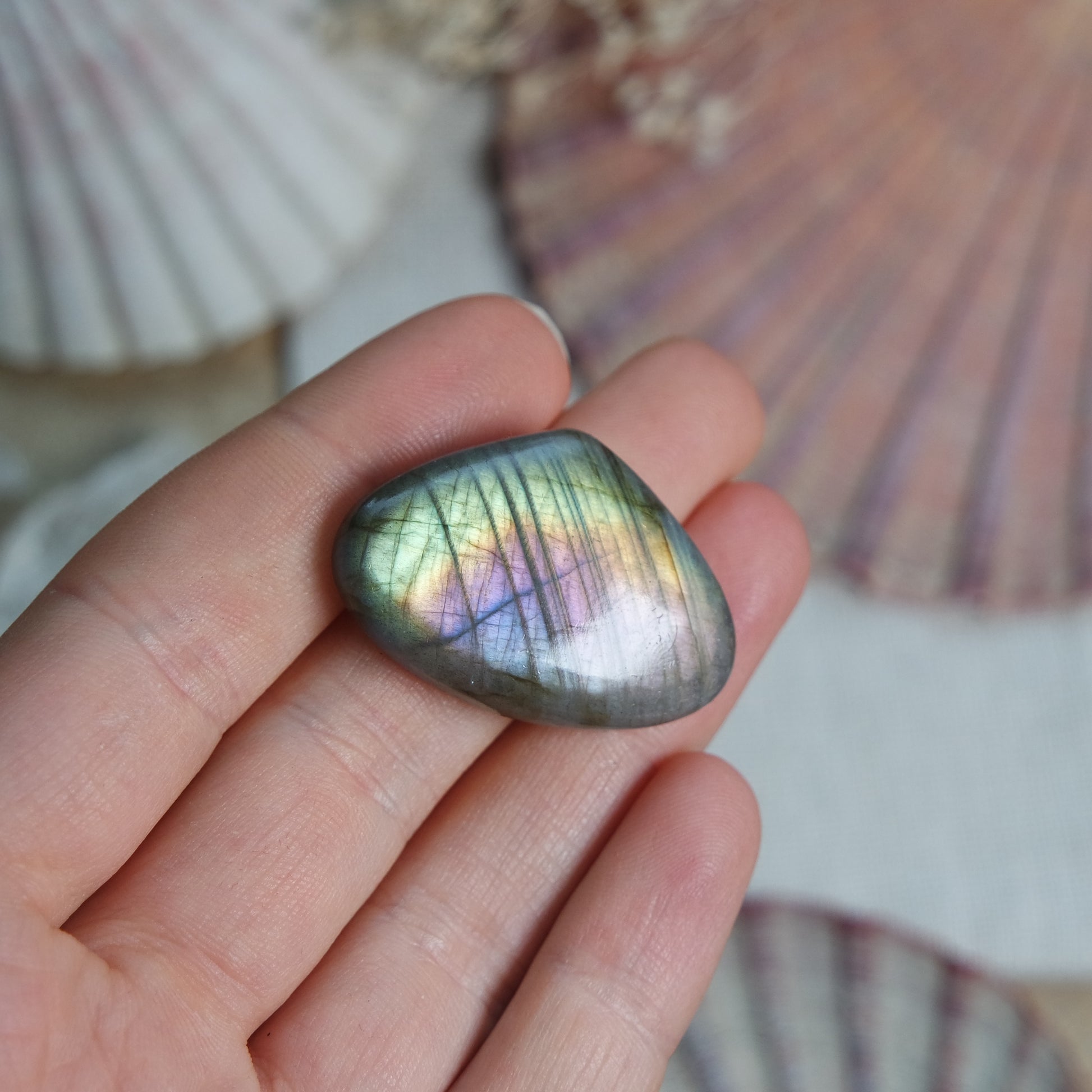 Labradorit wird oft mit Schutz, Intuition und spirituellem Wachstum in Verbindung gebracht. Dieser faszinierende Stein mit seinen schimmernden, regenbogenartigen Farben wird als besonders kraftvoll für die Förderung von innerer Klarheit und spirituellem Bewusstsein angesehen. In vielen spirituellen Traditionen wird Labradorit als Stein verwendet, der negative Energien abwehrt und den Träger mit positiven, schützenden Schwingungen umgibt. - Weichheit: Labradorit hat eine Mohshärte von 6 bis 6,5 und gehört damit zu den mittelharten Edelsteinen. Er ist relativ widerstandsfähig, aber dennoch anfällig für Kratzer und Beschädigungen, weshalb er mit Vorsicht behandelt werden sollte.