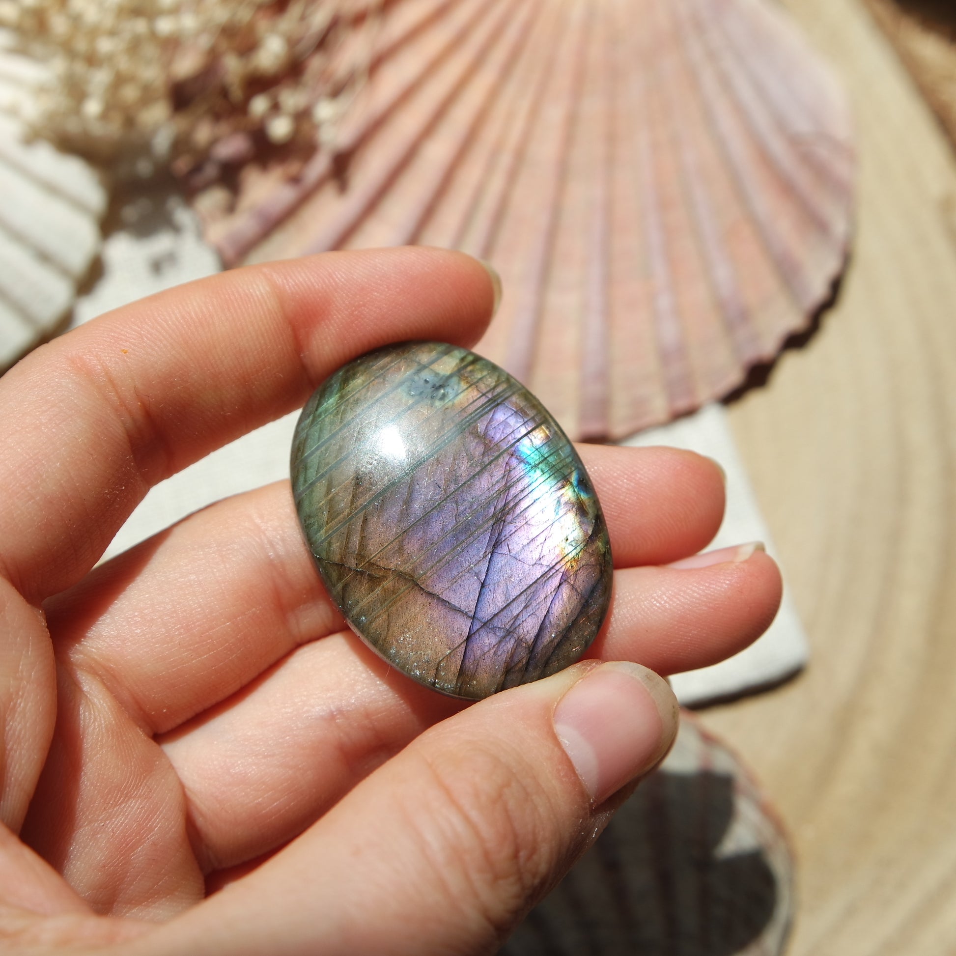 Labradorit wird oft mit Schutz, Intuition und spirituellem Wachstum in Verbindung gebracht. Dieser faszinierende Stein mit seinen schimmernden, regenbogenartigen Farben wird als besonders kraftvoll für die Förderung von innerer Klarheit und spirituellem Bewusstsein angesehen. In vielen spirituellen Traditionen wird Labradorit als Stein verwendet, der negative Energien abwehrt und den Träger mit positiven, schützenden Schwingungen umgibt. - Weichheit: Labradorit hat eine Mohshärte von 6 bis 6,5 und gehört damit zu den mittelharten Edelsteinen. Er ist relativ widerstandsfähig, aber dennoch anfällig für Kratzer und Beschädigungen, weshalb er mit Vorsicht behandelt werden sollte.