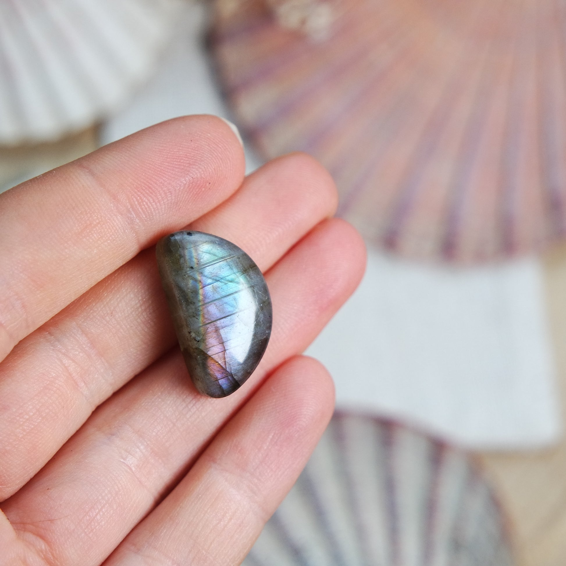 Labradorit wird oft mit Schutz, Intuition und spirituellem Wachstum in Verbindung gebracht. Dieser faszinierende Stein mit seinen schimmernden, regenbogenartigen Farben wird als besonders kraftvoll für die Förderung von innerer Klarheit und spirituellem Bewusstsein angesehen. In vielen spirituellen Traditionen wird Labradorit als Stein verwendet, der negative Energien abwehrt und den Träger mit positiven, schützenden Schwingungen umgibt. - Weichheit: Labradorit hat eine Mohshärte von 6 bis 6,5 und gehört damit zu den mittelharten Edelsteinen. Er ist relativ widerstandsfähig, aber dennoch anfällig für Kratzer und Beschädigungen, weshalb er mit Vorsicht behandelt werden sollte.