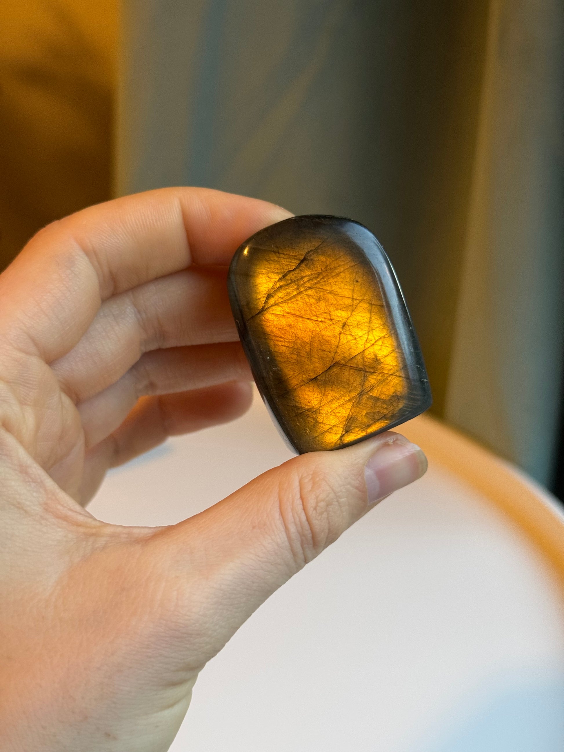 - Weichheit: Mit einer Mohshärte von 6 bis 6,5 ist Labradorit relativ robust, sollte aber vorsichtig behandelt werden, um Kratzer zu vermeiden.
