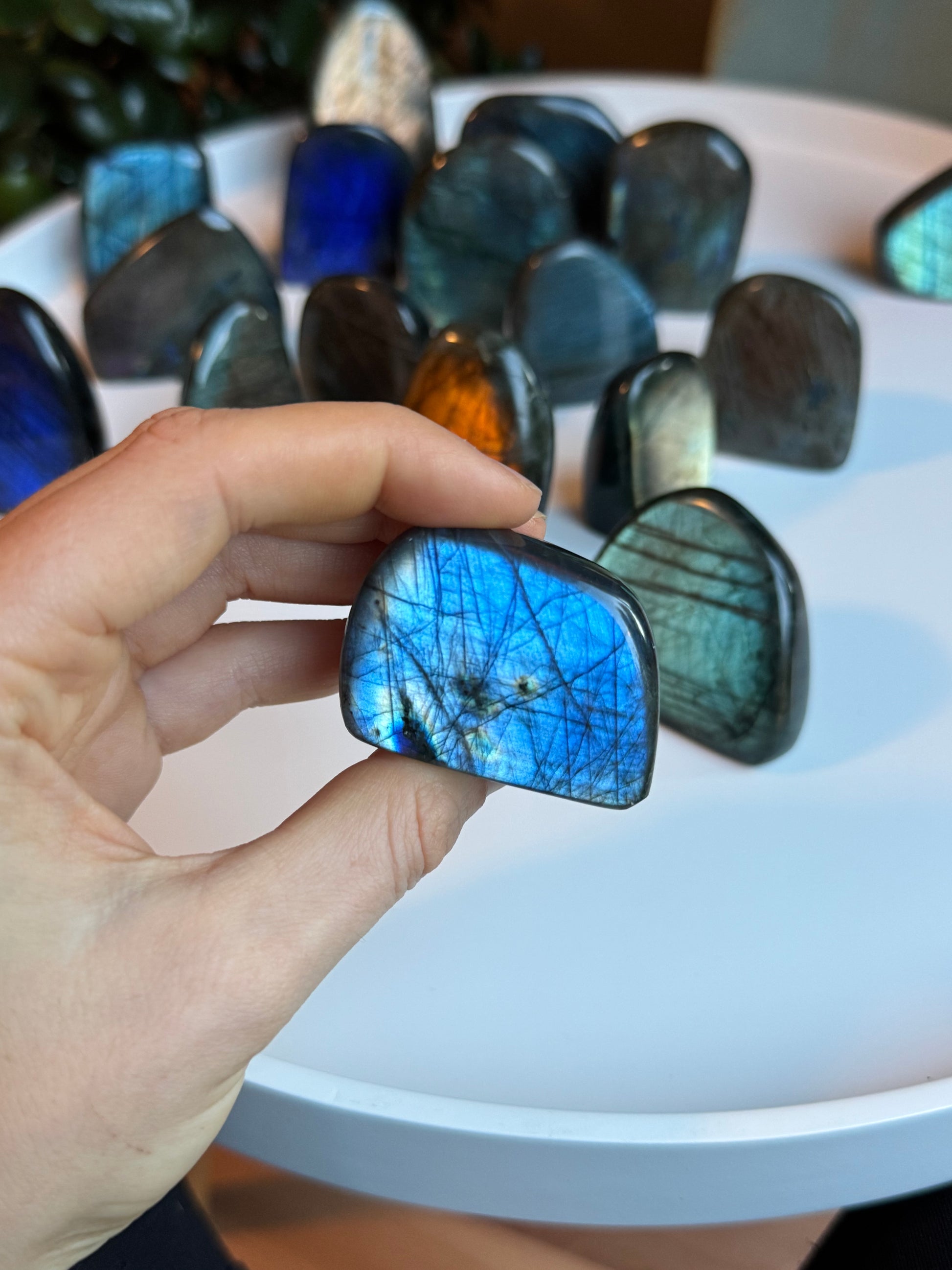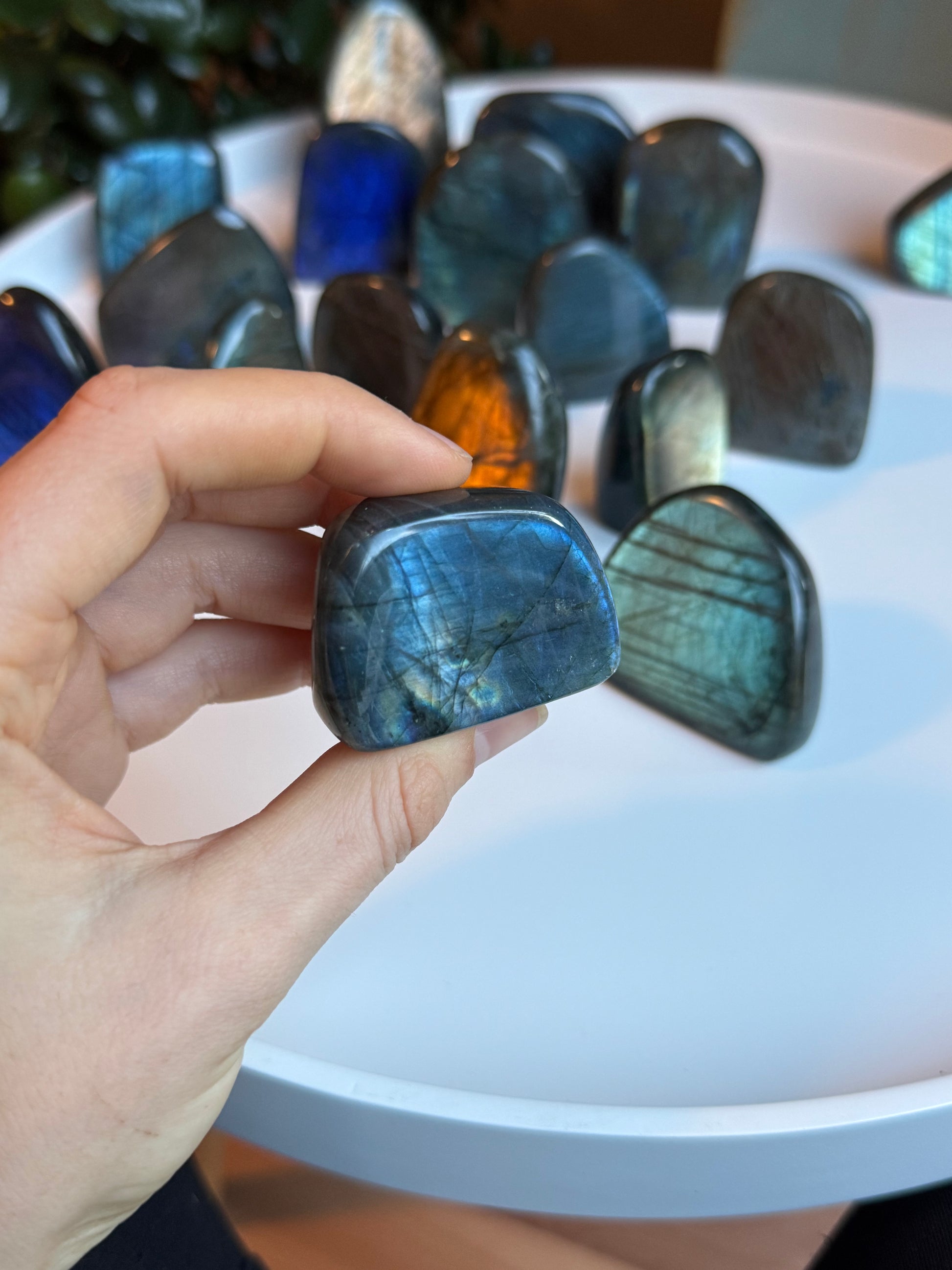 - Weichheit: Mit einer Mohshärte von 6 bis 6,5 ist Labradorit relativ robust, sollte aber vorsichtig behandelt werden, um Kratzer zu vermeiden.