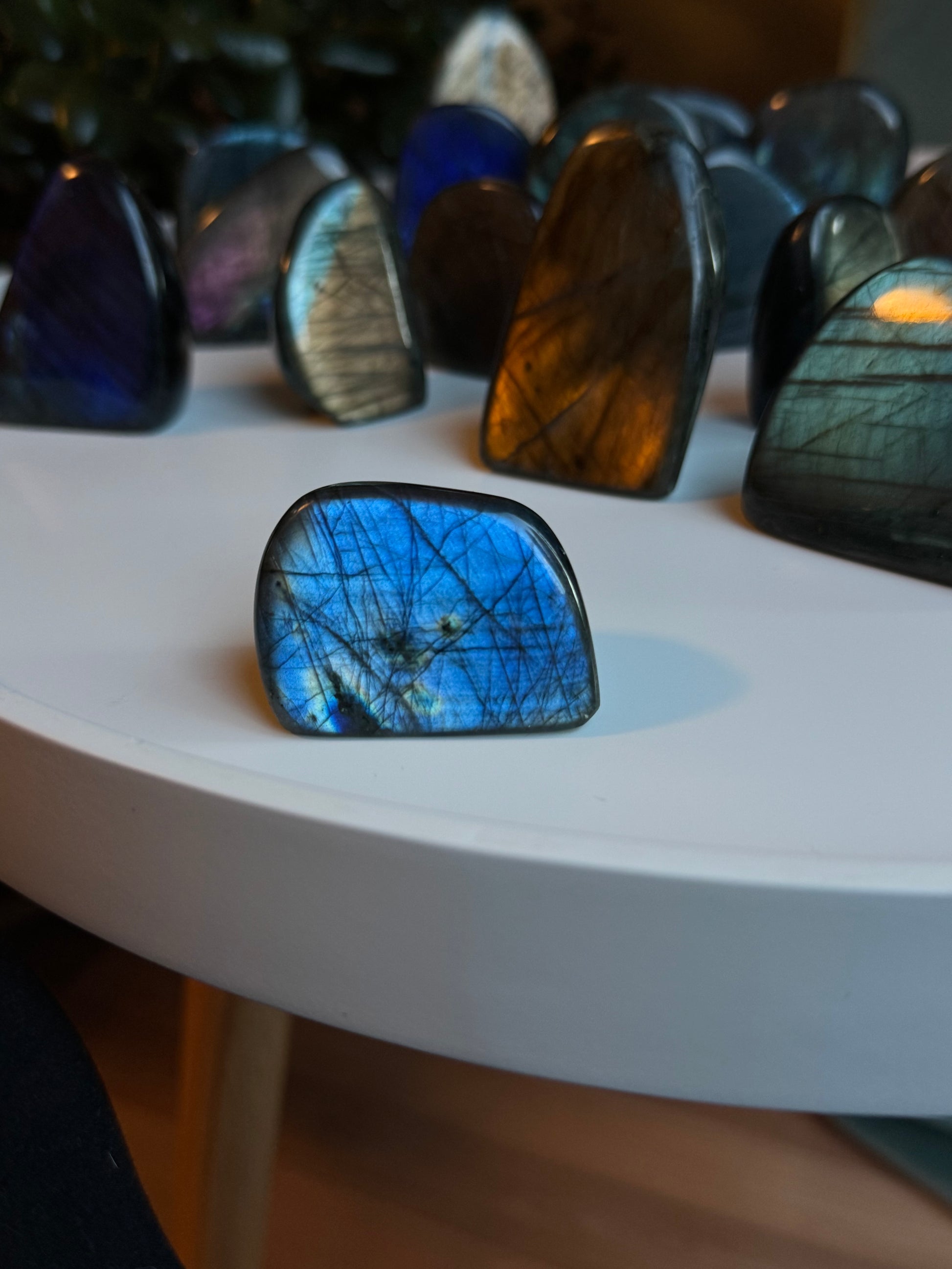 - Spirituelle Bedeutung: Labradorit wird mit Intuition und innerer Stärke in Verbindung gebracht. Er ist bekannt für seine schützenden Eigenschaften und wird oft genutzt, um das persönliche Energiefeld zu stärken.