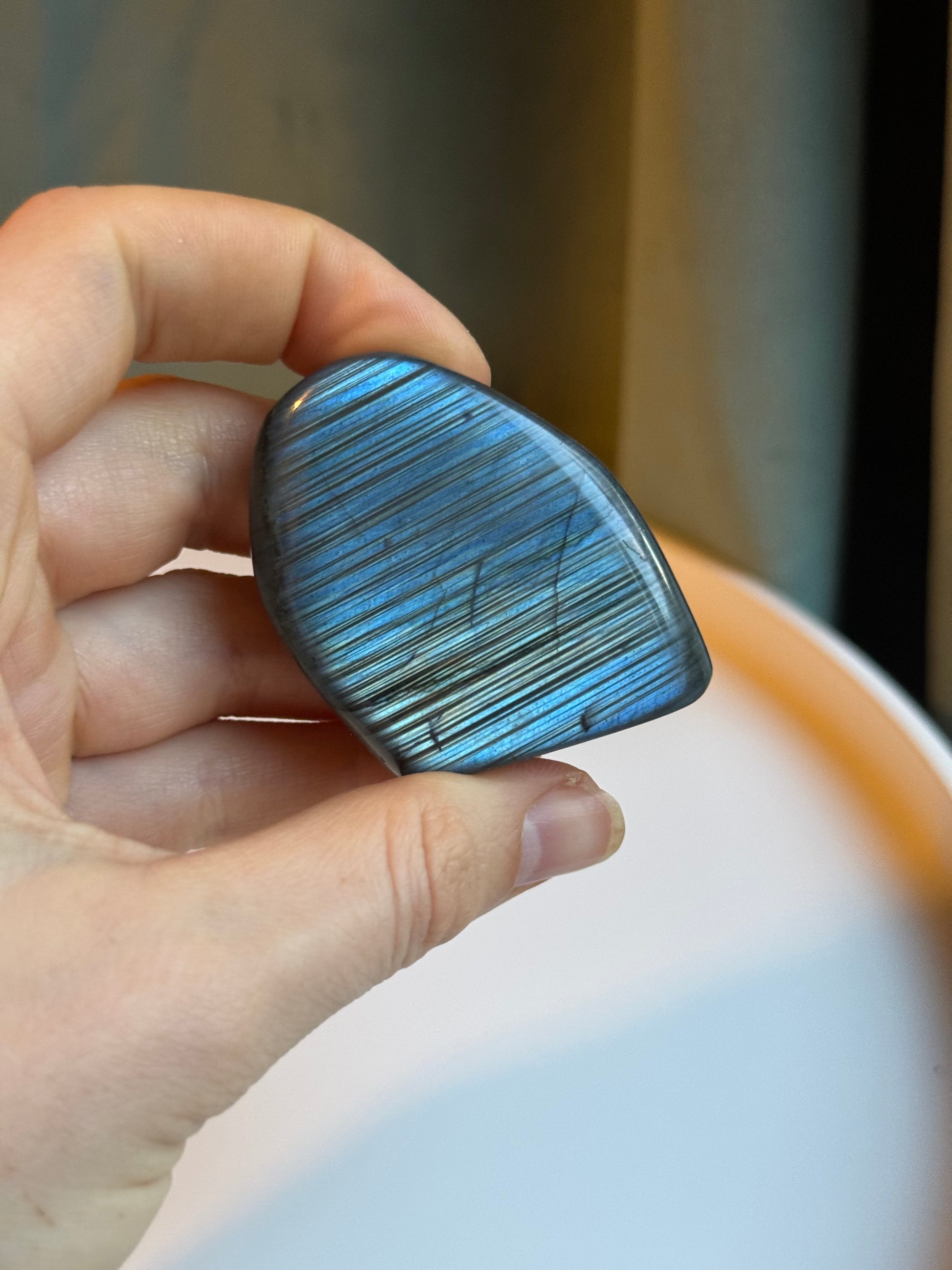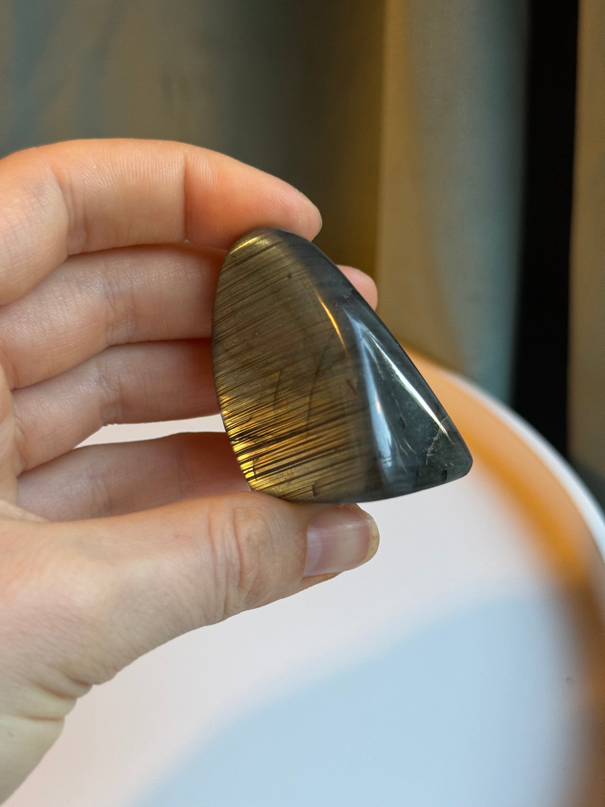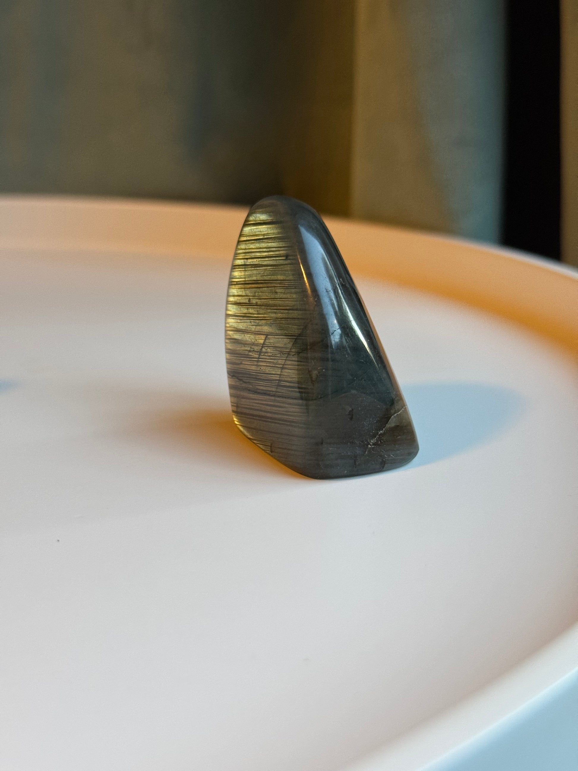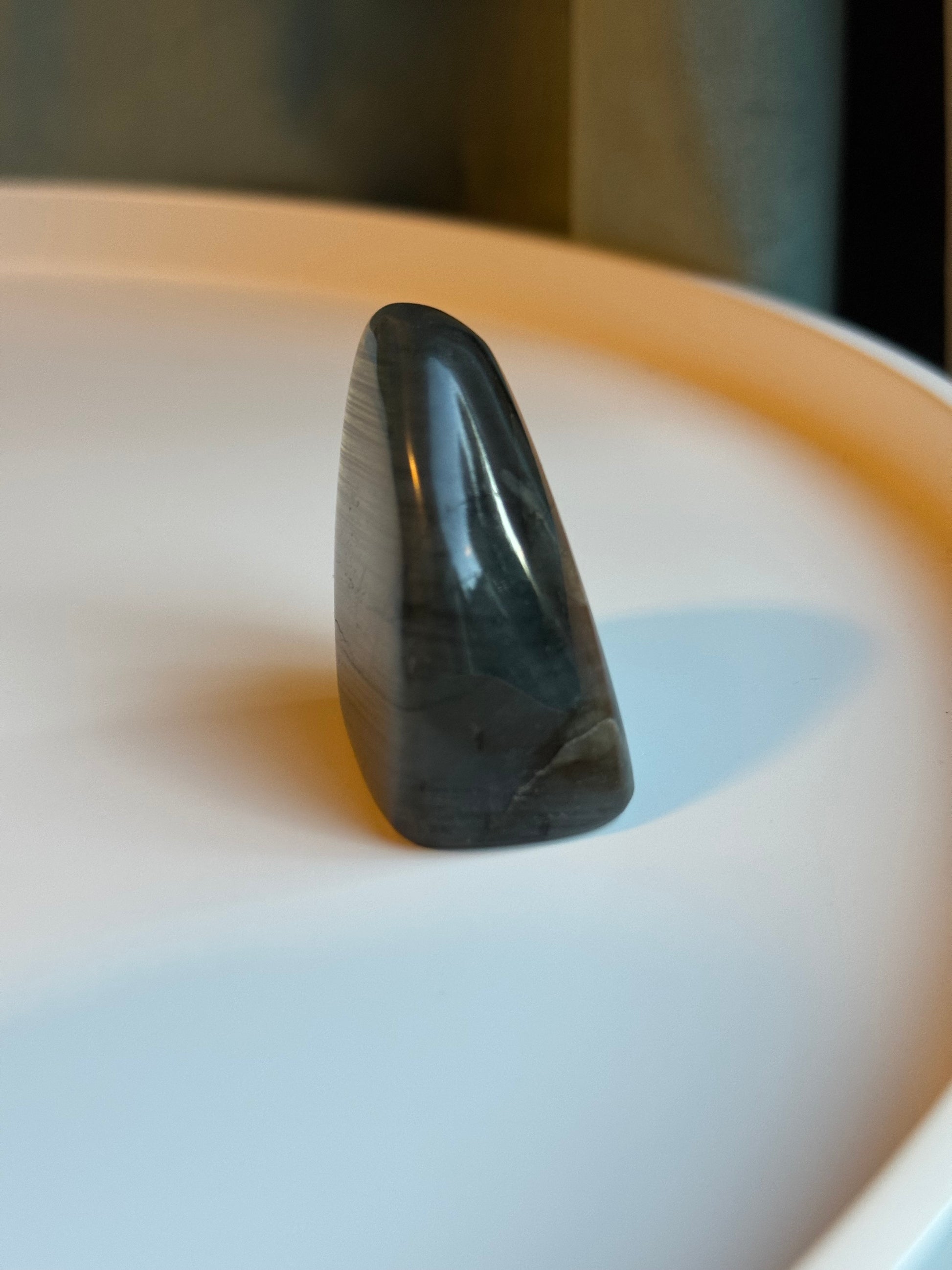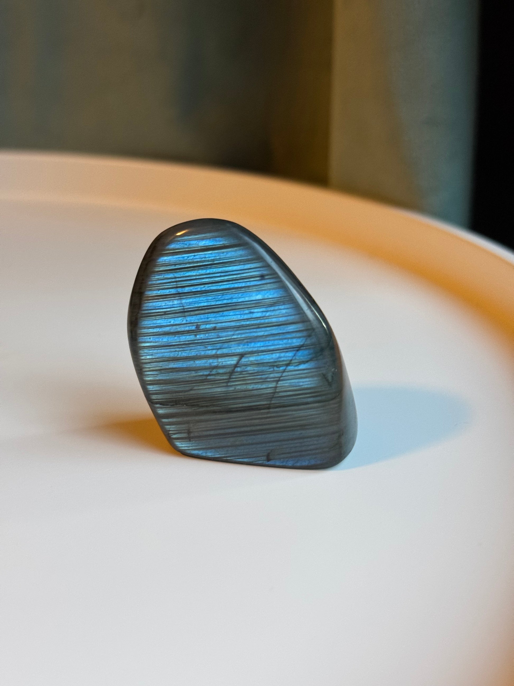- Weichheit: Mit einer Mohshärte von 6 bis 6,5 ist Labradorit relativ robust, sollte aber vorsichtig behandelt werden, um Kratzer zu vermeiden.