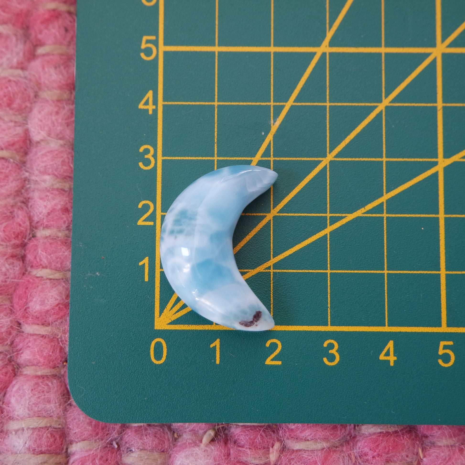 - Weichheit: Mit einer Mohshärte von 4,5 bis 5 ist Larimar weich und sollte vorsichtig behandelt werden, um Kratzer zu vermeiden.