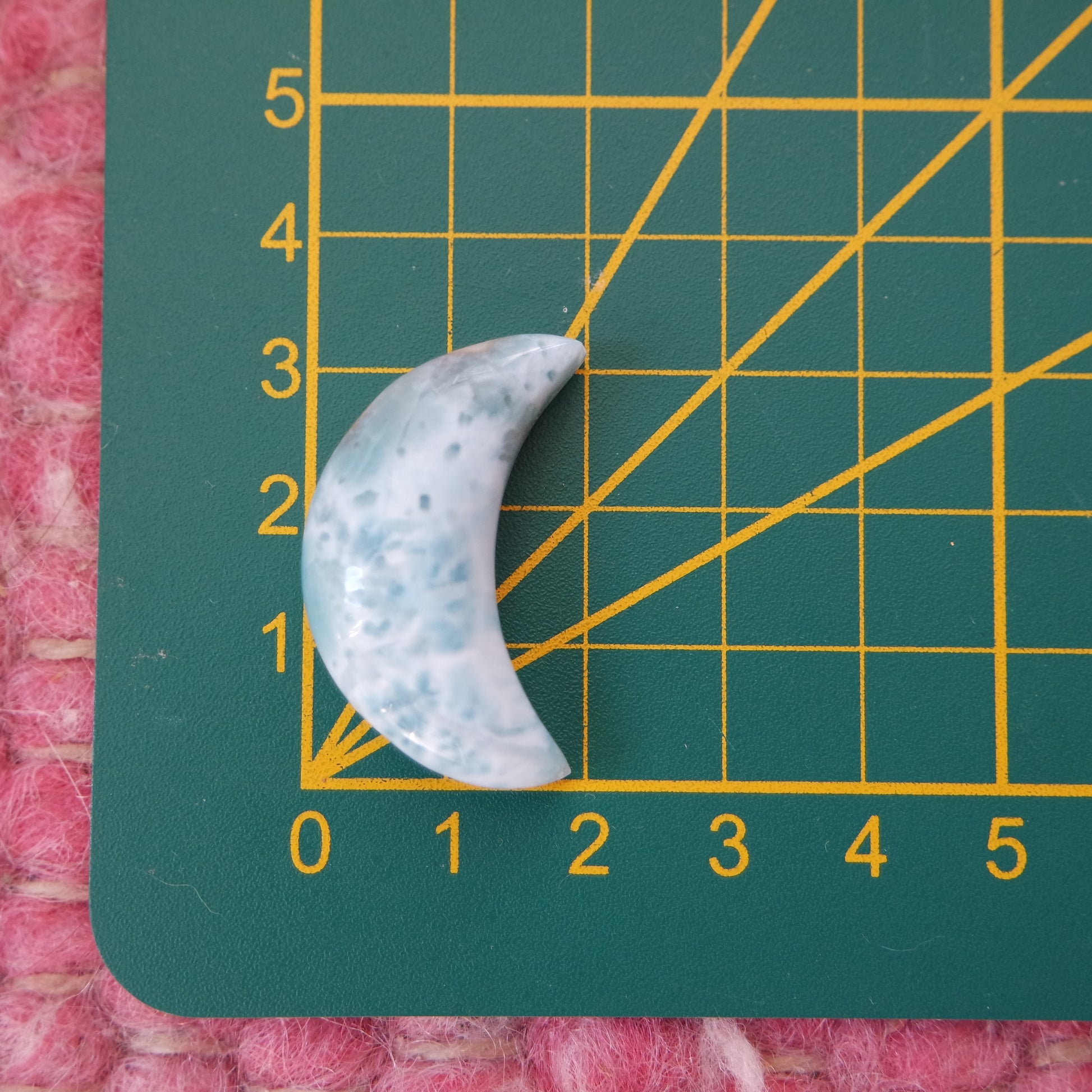 - Weichheit: Mit einer Mohshärte von 4,5 bis 5 ist Larimar weich und sollte vorsichtig behandelt werden, um Kratzer zu vermeiden.