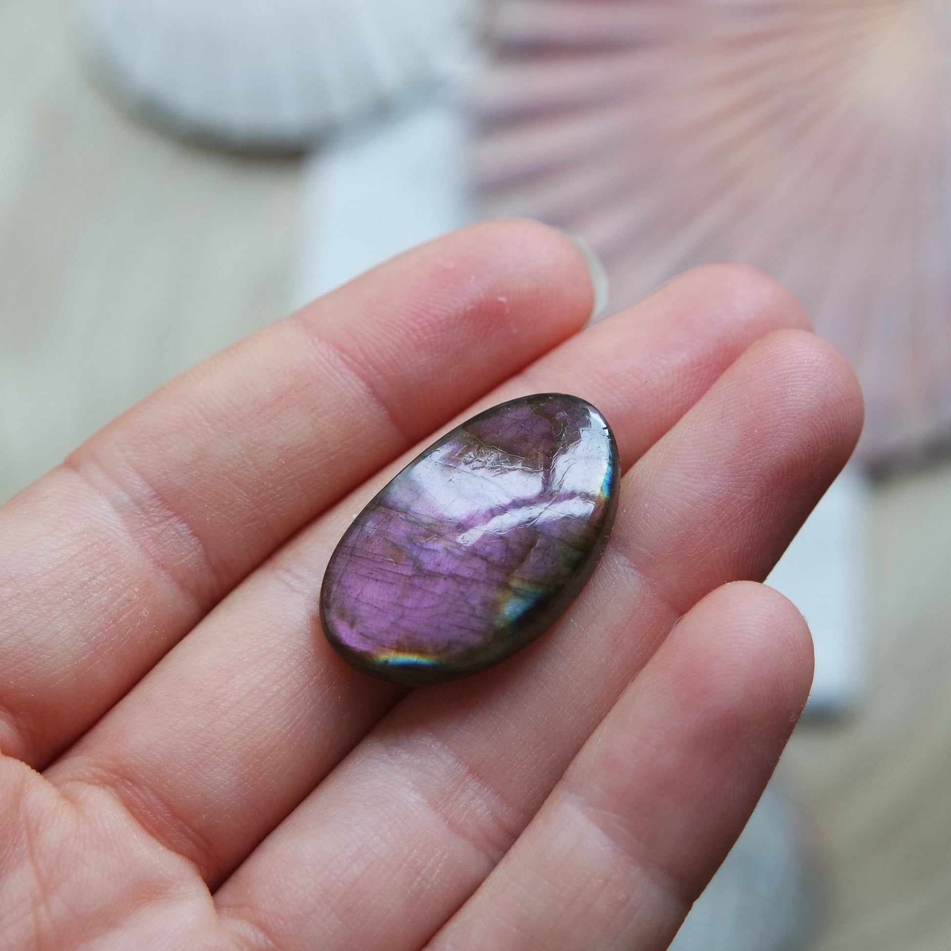 Lila Labradorit Cabochon zur Schmuckherstellung oder zum sammeln.
