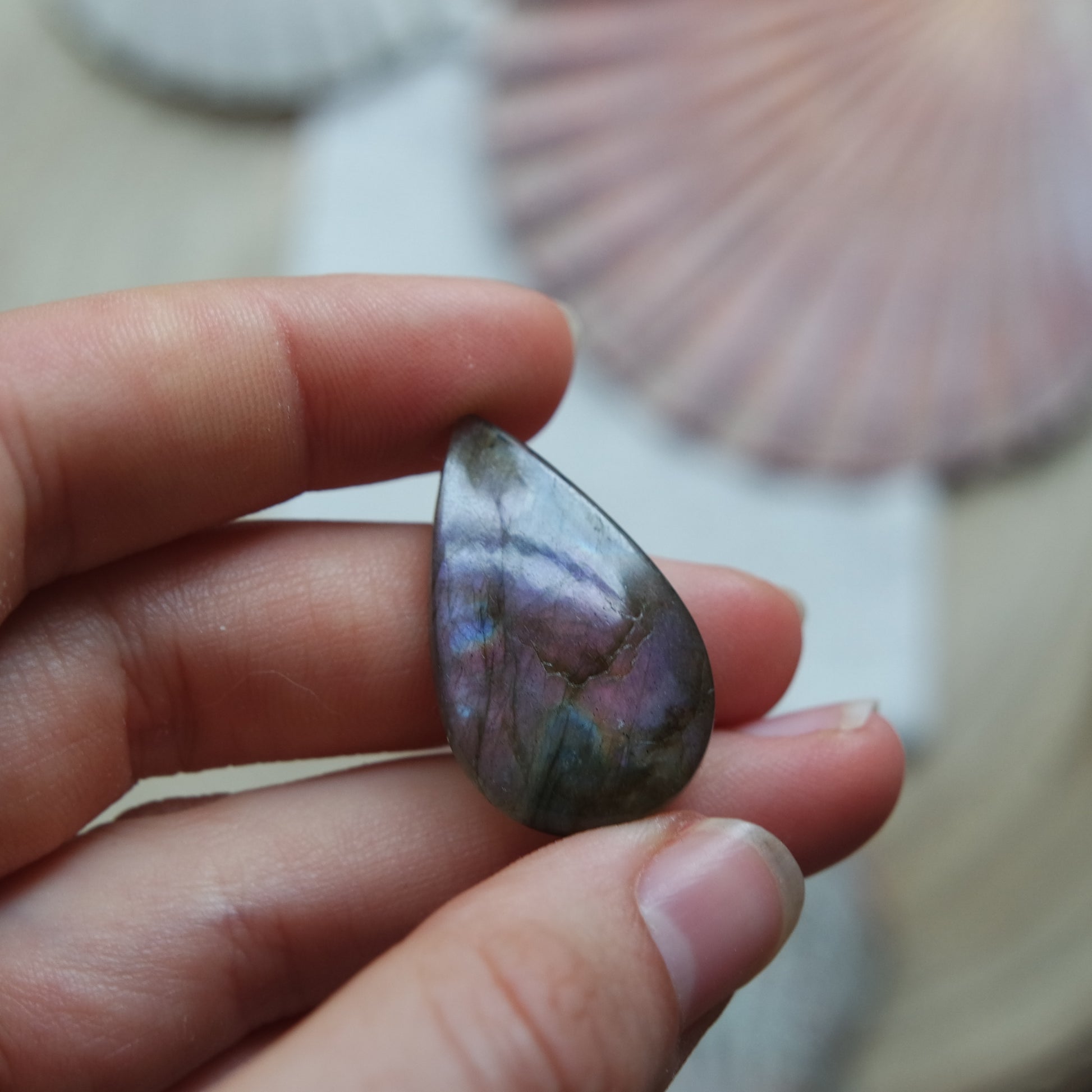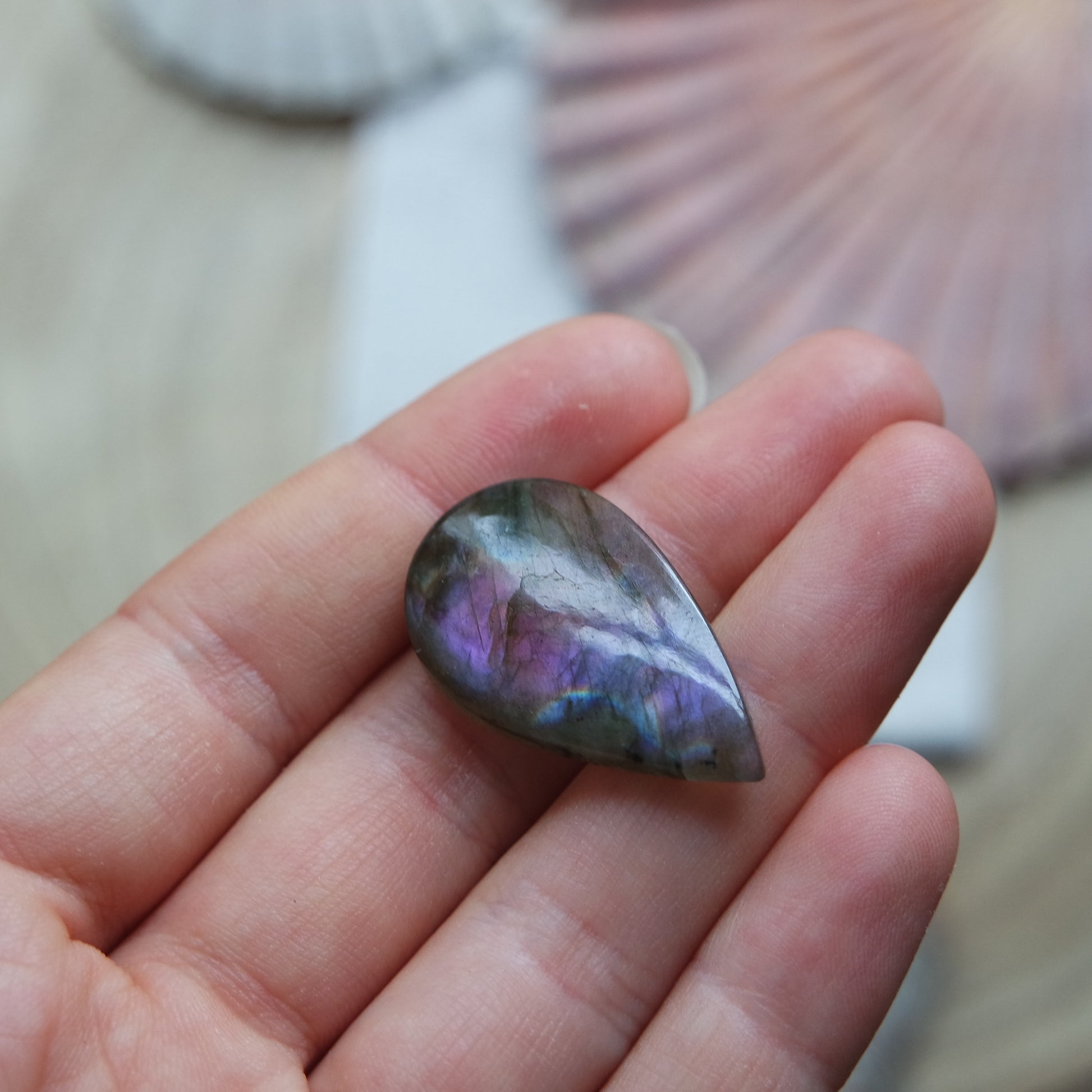 Lila Labradorit Cabochon zur Schmuckherstellung oder zum sammeln.