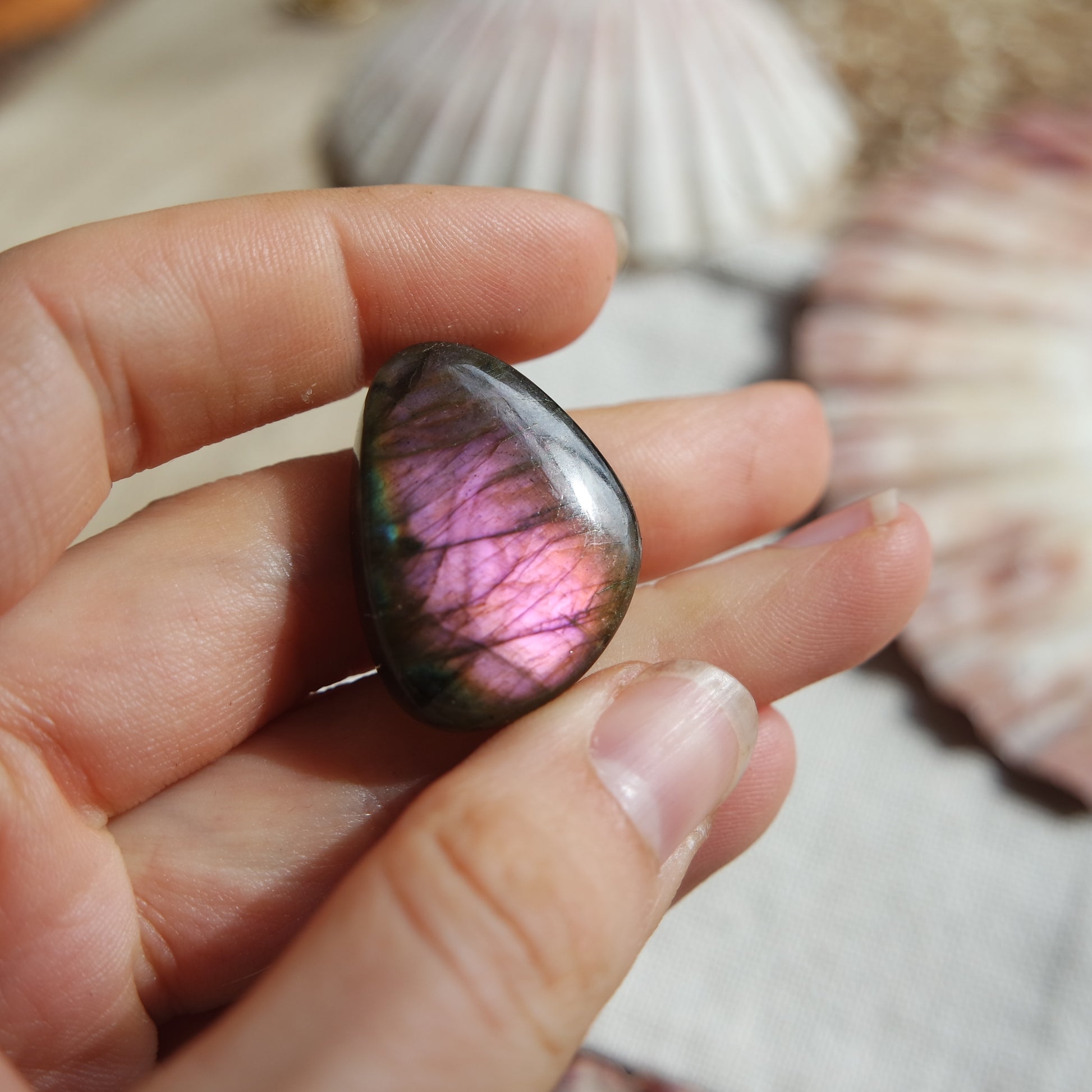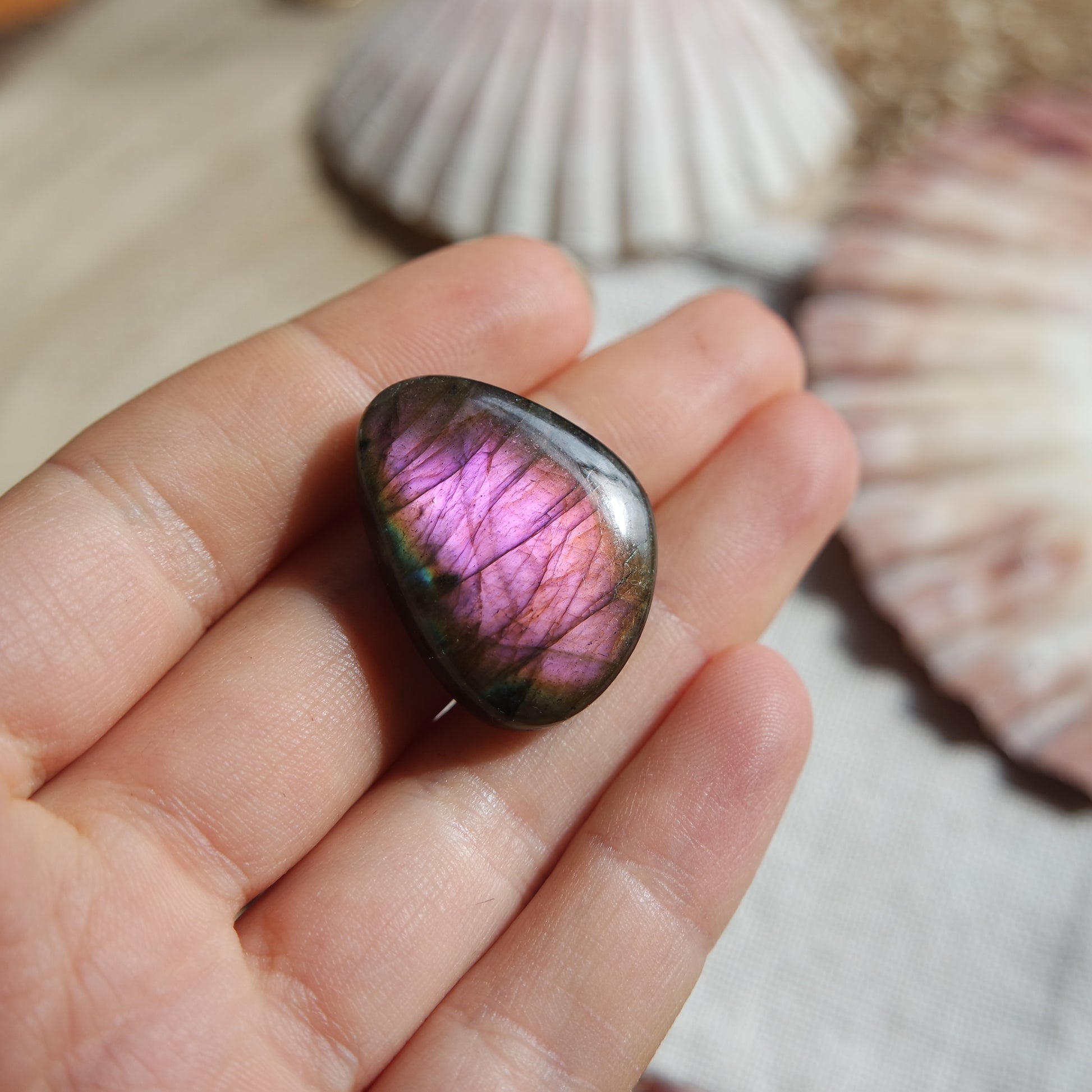 Lila Labradorit Cabochon zur Schmuckherstellung oder zum sammeln.