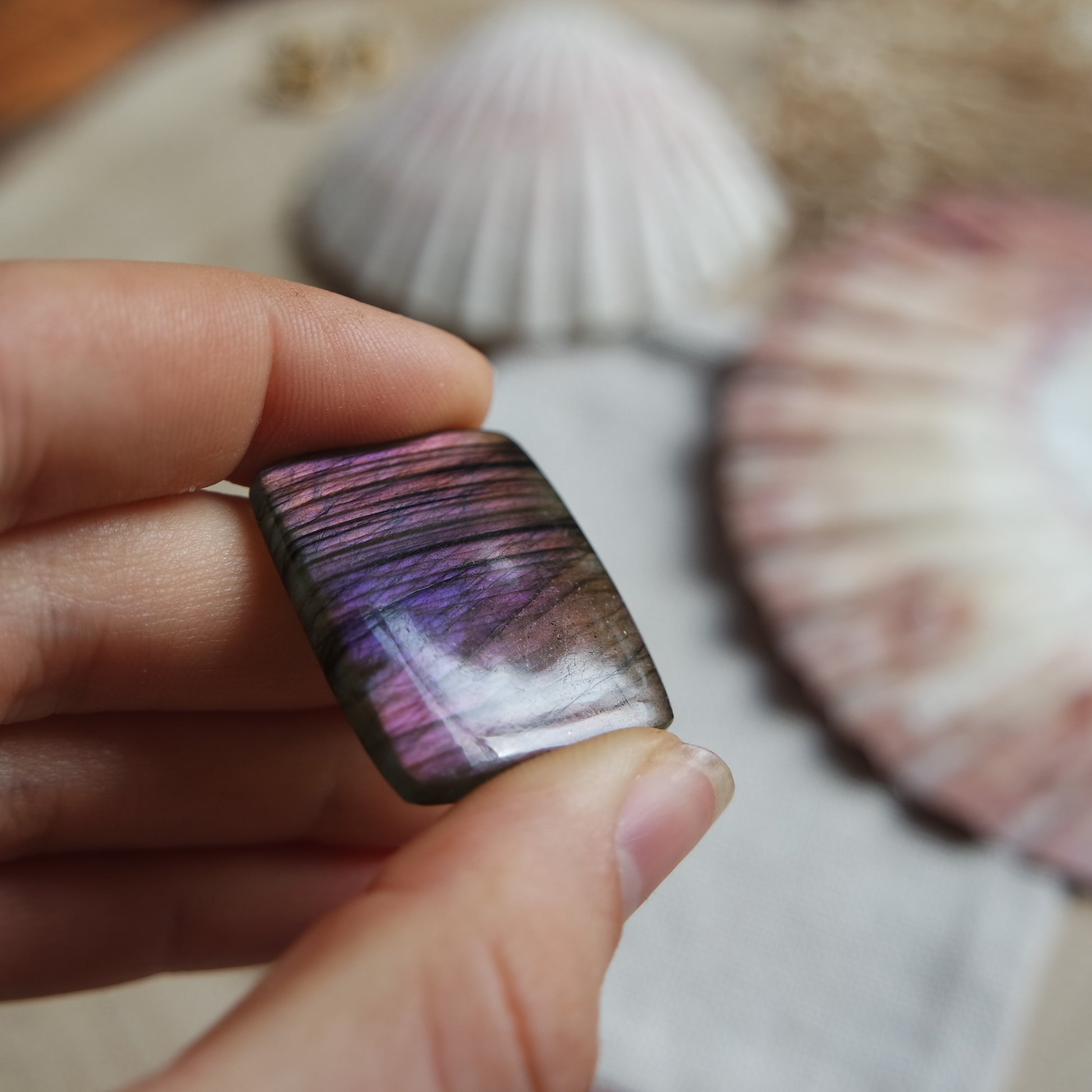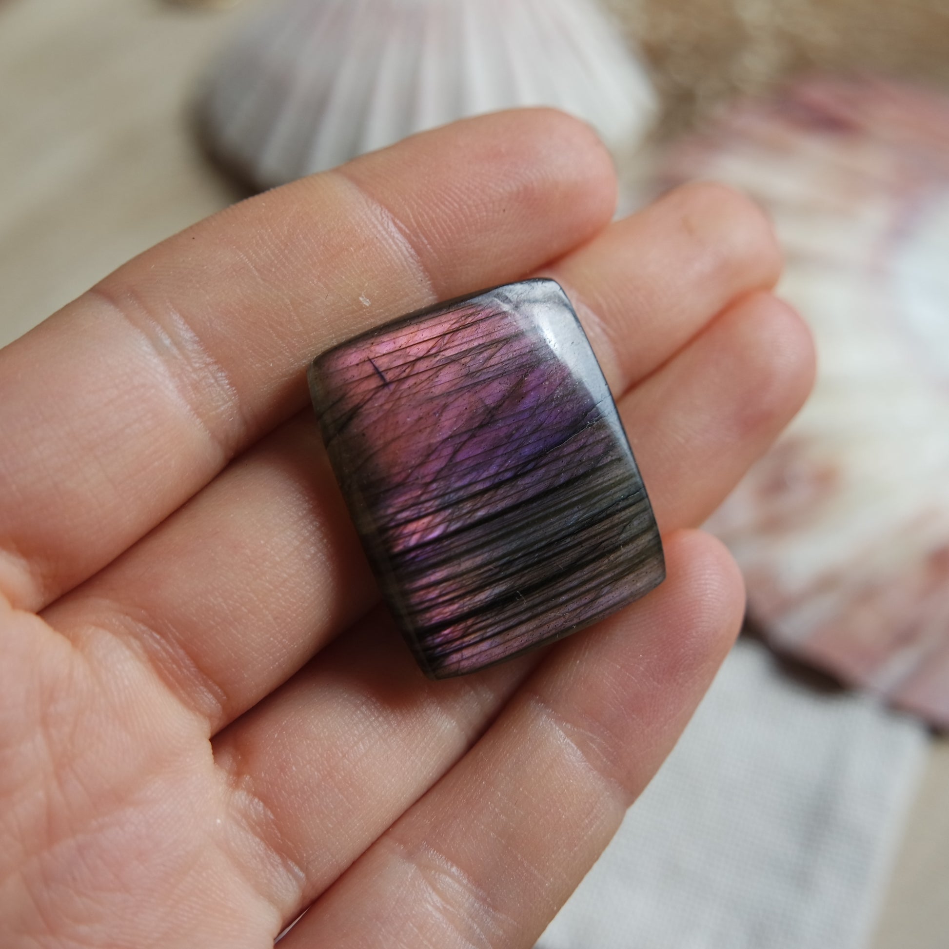 Lila Labradorit Cabochon zur Schmuckherstellung oder zum sammeln.