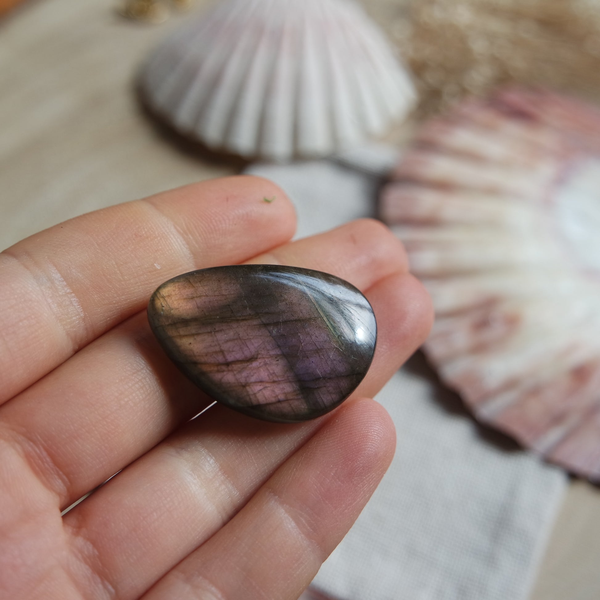Lila Labradorit Cabochon zur Schmuckherstellung oder zum sammeln.