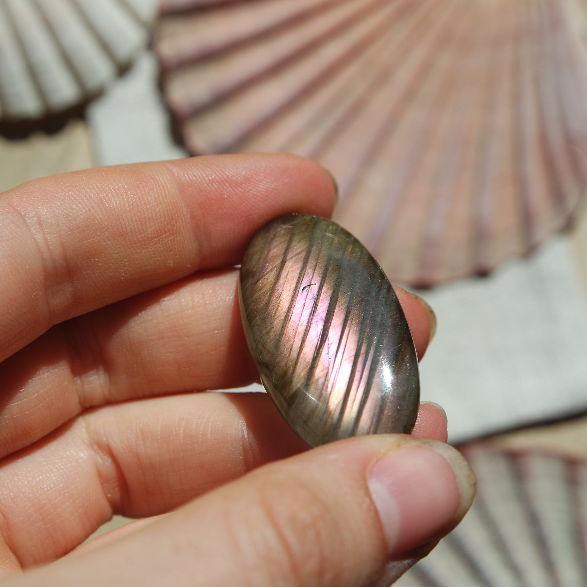 Lila Labradorit Cabochon zur Schmuckherstellung oder zum sammeln.