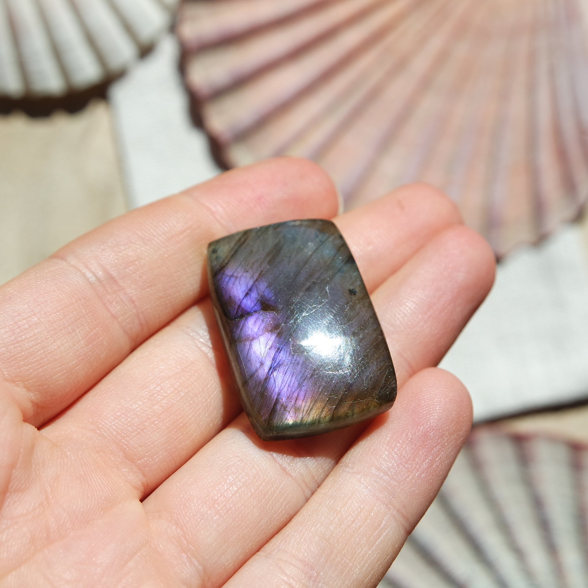 Lila Labradorit Cabochon zur Schmuckherstellung oder zum sammeln.