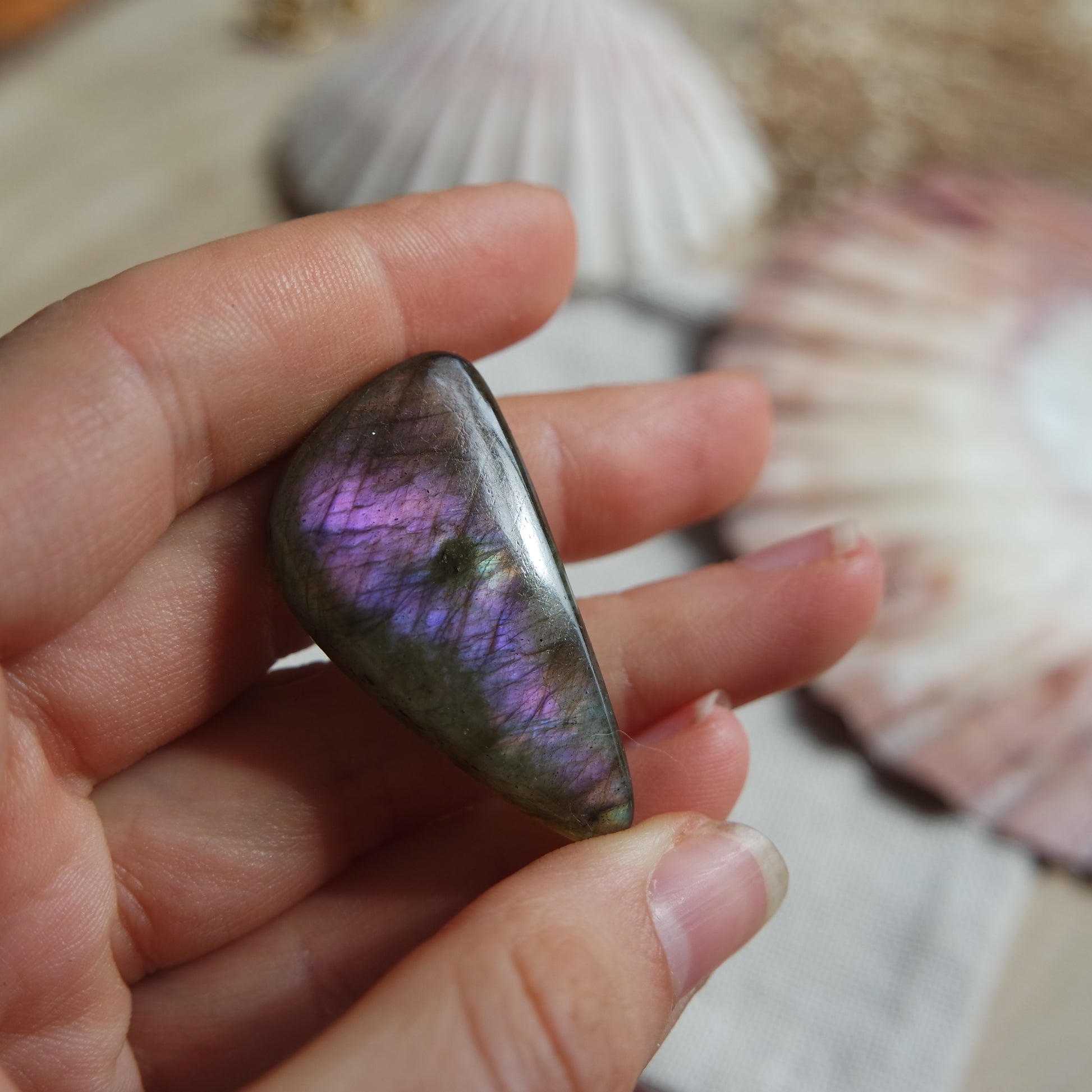 Lila Labradorit Cabochon zur Schmuckherstellung oder zum sammeln.