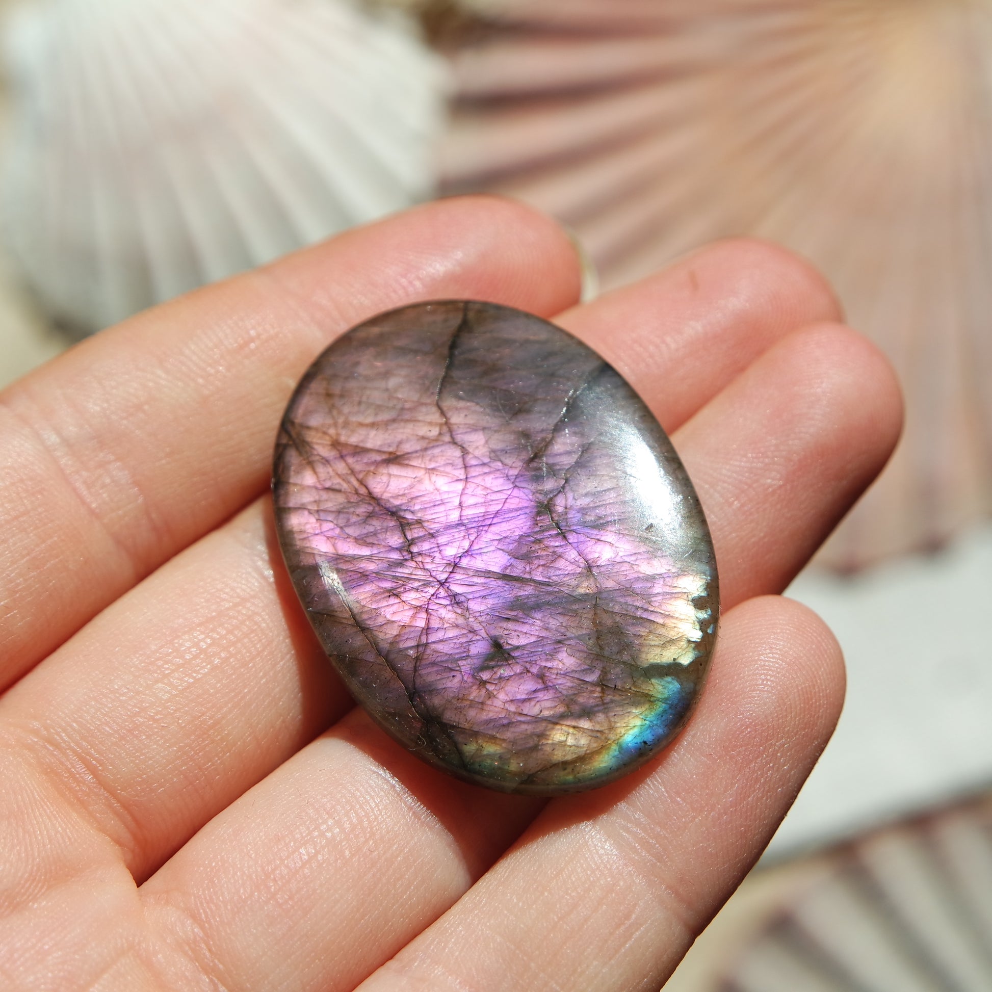 Lila Labradorit Cabochon zur Schmuckherstellung oder zum sammeln.