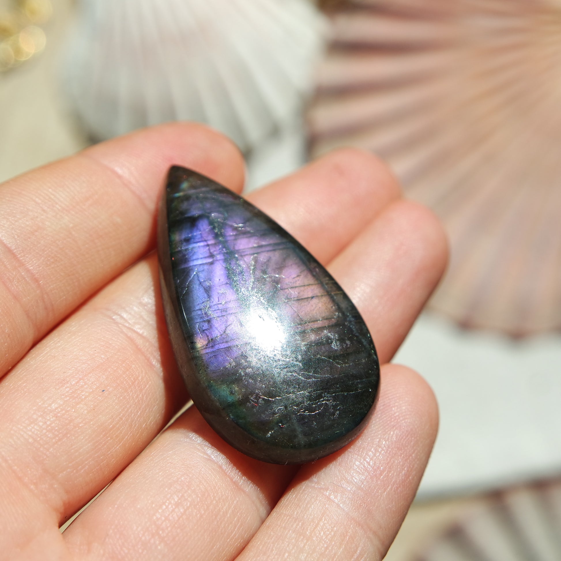 Lila Labradorit Cabochon zur Schmuckherstellung oder zum sammeln.