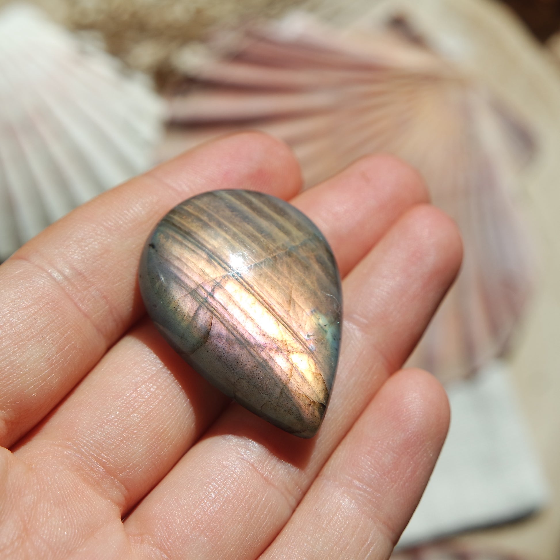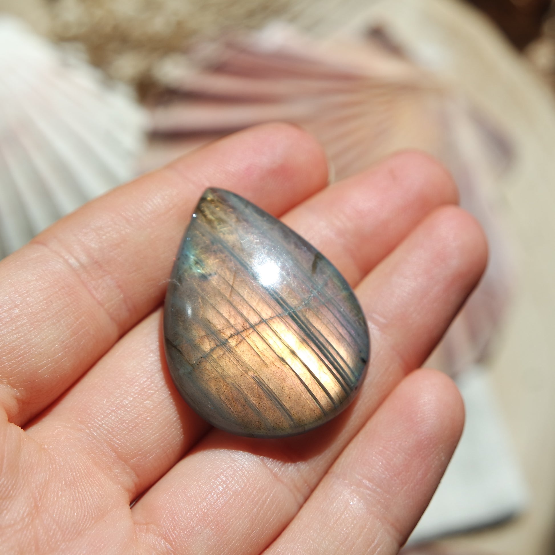 - Wasser: Labradorit ist nicht besonders wasserempfindlich, jedoch sollte er nicht längere Zeit in Wasser eingeweicht werden, um seine Farbintensität und strukturelle Integrität zu bewahren.