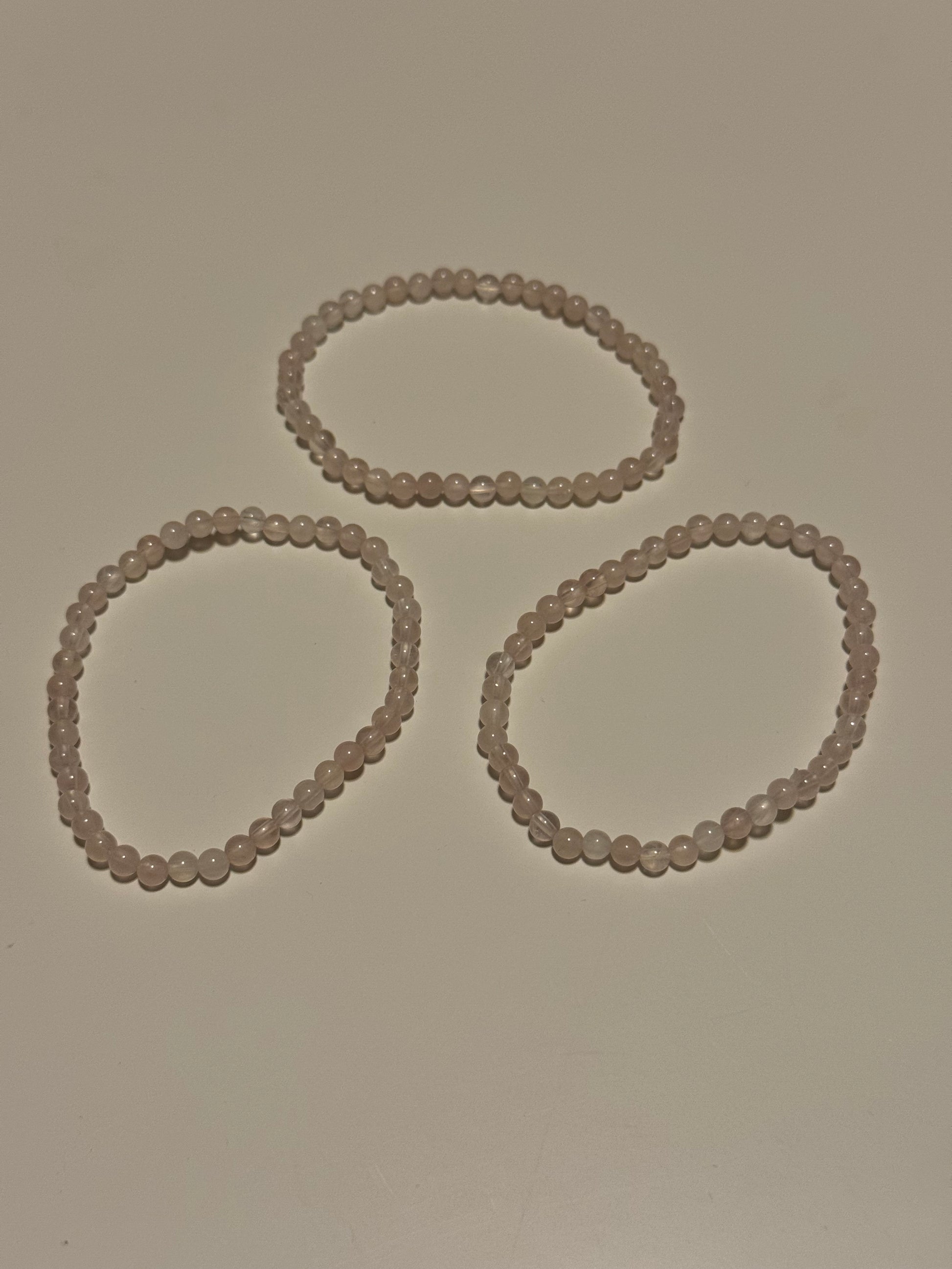 Edelstein Gummiarmband mit 4mm Rosenquarz Perlen.