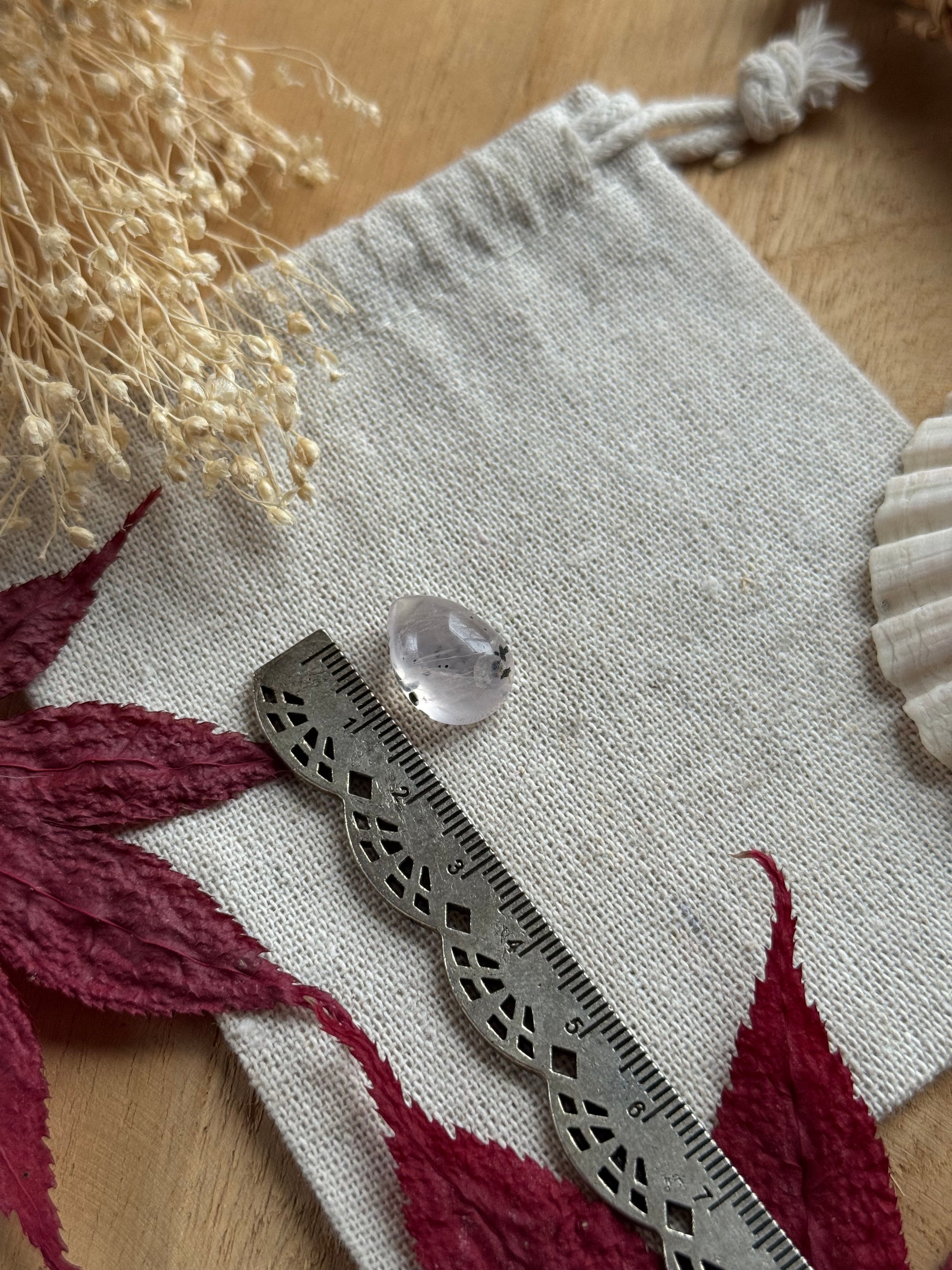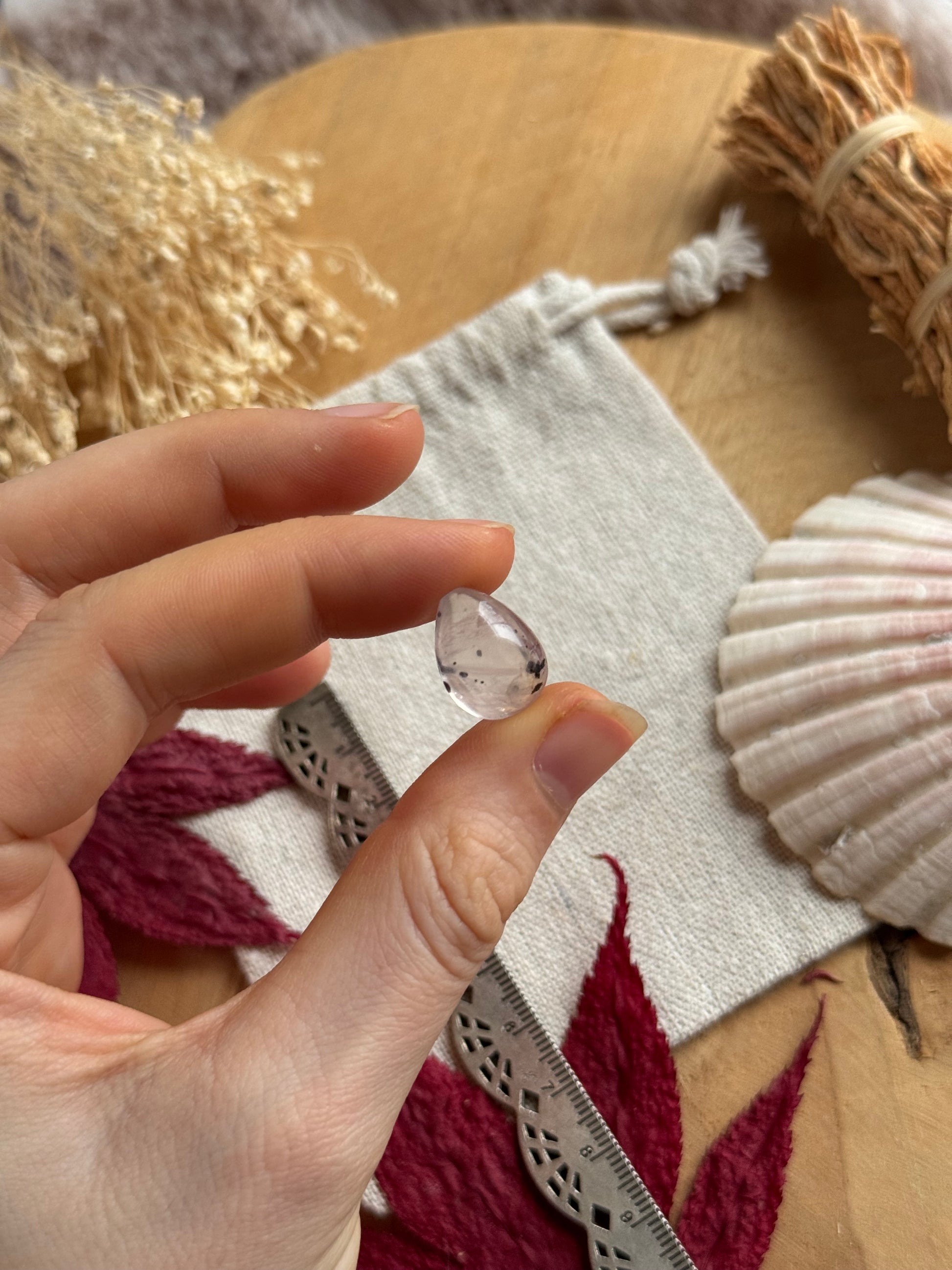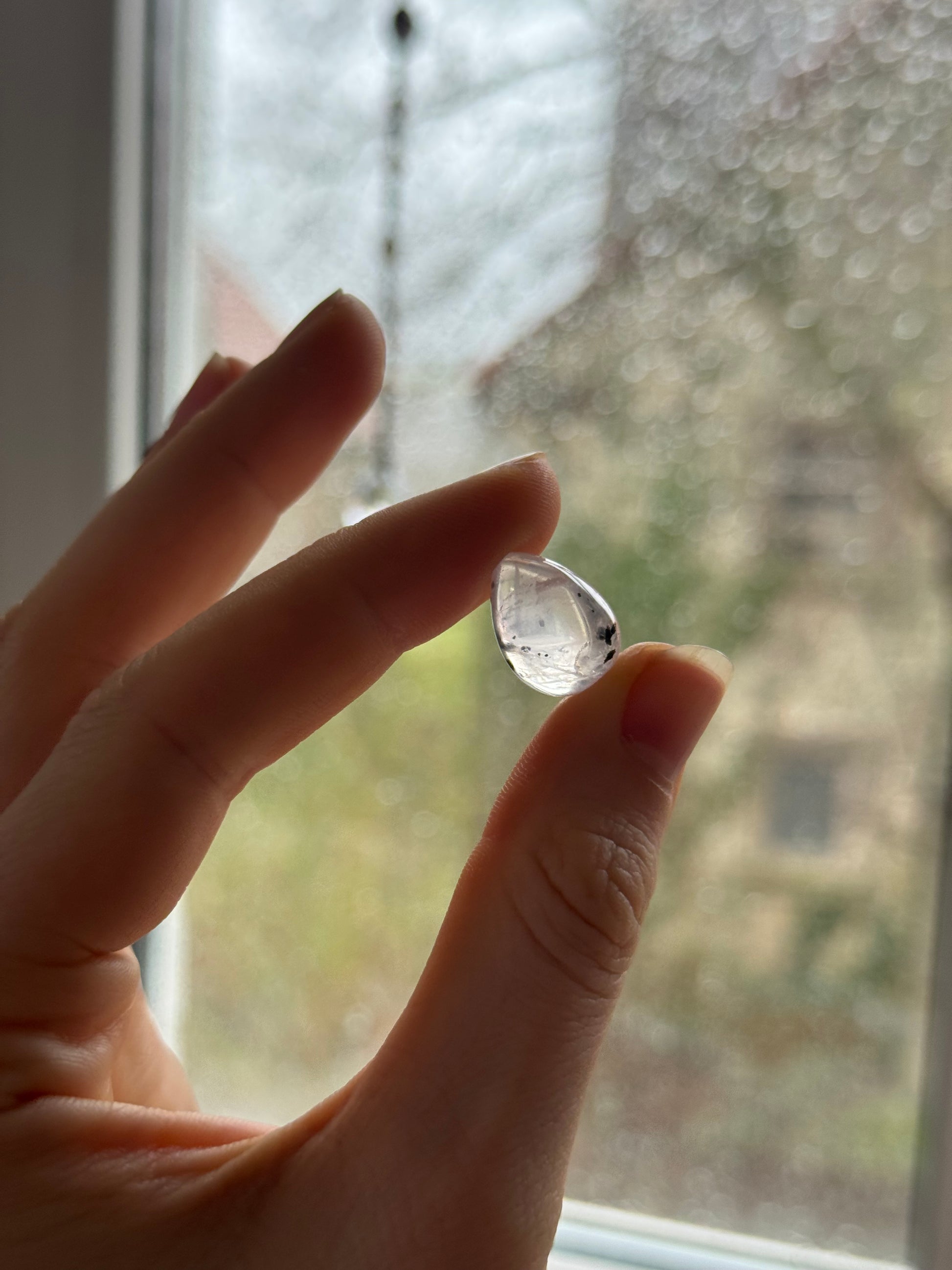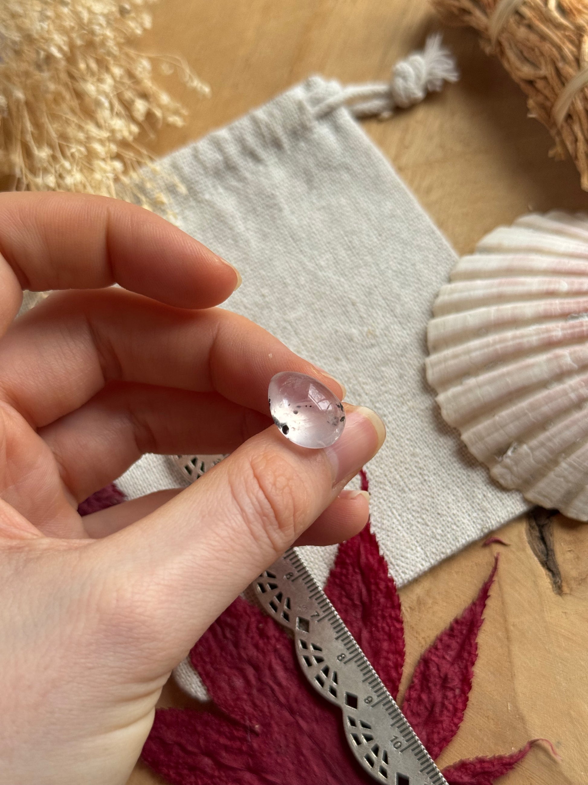 Drachenfruchtquarz (Saponit in Quarz) mit zarten Einschlüssen, die dem Stein Tiefe und Individualität verleihen.