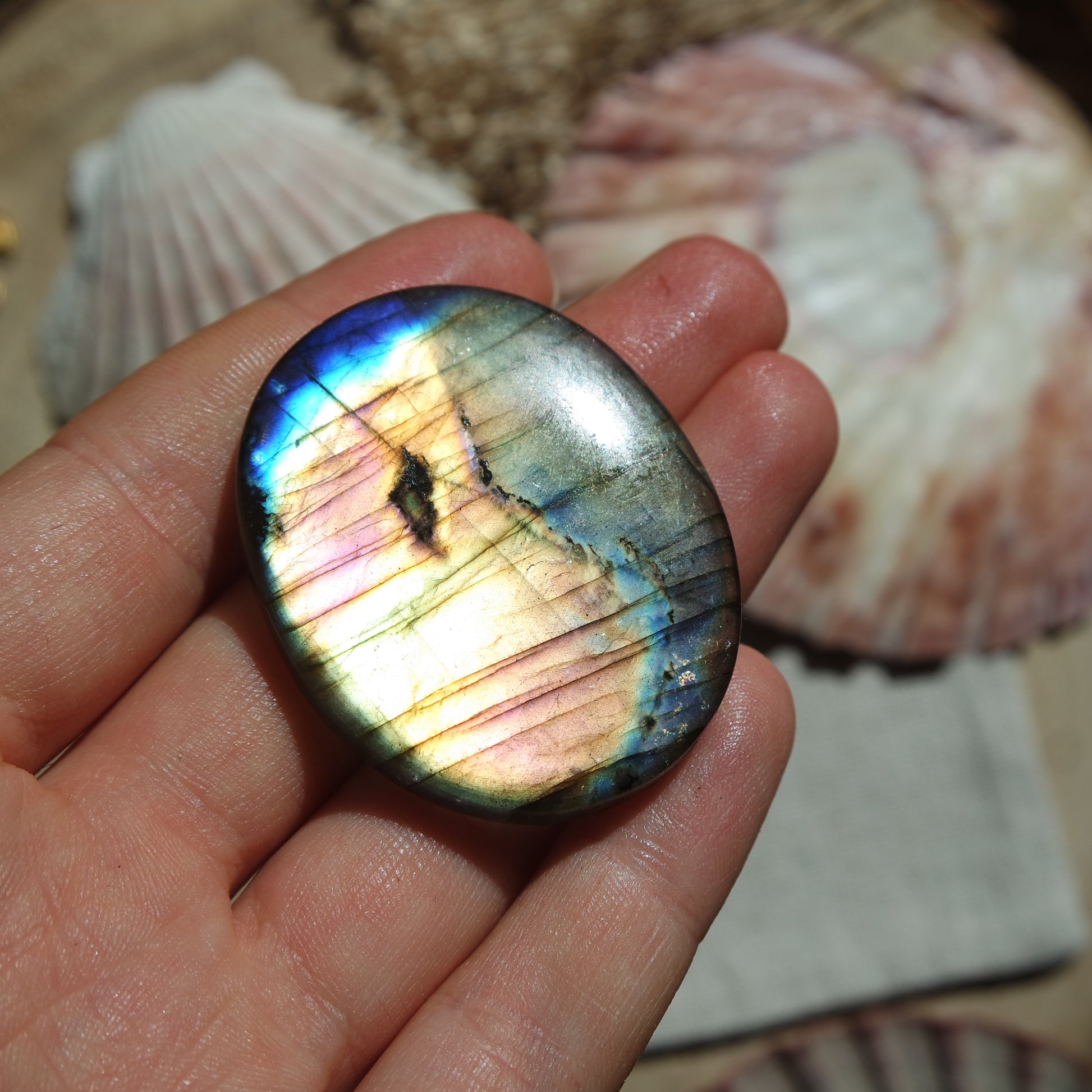 Labradorit wird oft mit Schutz, Intuition und spirituellem Wachstum in Verbindung gebracht. Dieser faszinierende Stein mit seinen schimmernden, regenbogenartigen Farben wird als besonders kraftvoll für die Förderung von innerer Klarheit und spirituellem Bewusstsein angesehen. In vielen spirituellen Traditionen wird Labradorit als Stein verwendet, der negative Energien abwehrt und den Träger mit positiven, schützenden Schwingungen umgibt. - Weichheit: Labradorit hat eine Mohshärte von 6 bis 6,5 und gehört damit zu den mittelharten Edelsteinen. Er ist relativ widerstandsfähig, aber dennoch anfällig für Kratzer und Beschädigungen, weshalb er mit Vorsicht behandelt werden sollte.