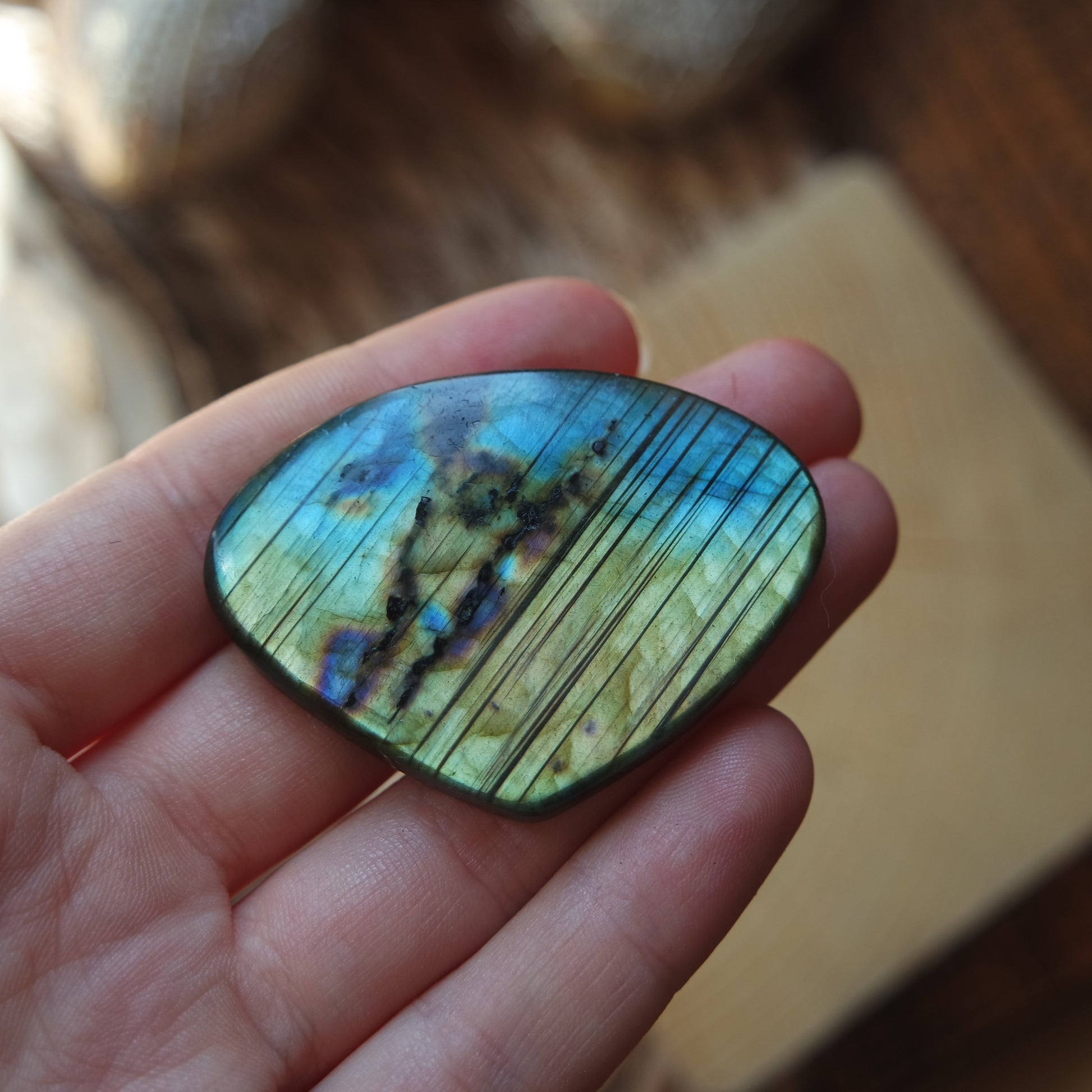 Labradorit wird oft mit Schutz, Intuition und spirituellem Wachstum in Verbindung gebracht. Dieser faszinierende Stein mit seinen schimmernden, regenbogenartigen Farben wird als besonders kraftvoll für die Förderung von innerer Klarheit und spirituellem Bewusstsein angesehen. In vielen spirituellen Traditionen wird Labradorit als Stein verwendet, der negative Energien abwehrt und den Träger mit positiven, schützenden Schwingungen umgibt. - Weichheit: Labradorit hat eine Mohshärte von 6 bis 6,5 und gehört damit zu den mittelharten Edelsteinen. Er ist relativ widerstandsfähig, aber dennoch anfällig für Kratzer und Beschädigungen, weshalb er mit Vorsicht behandelt werden sollte.