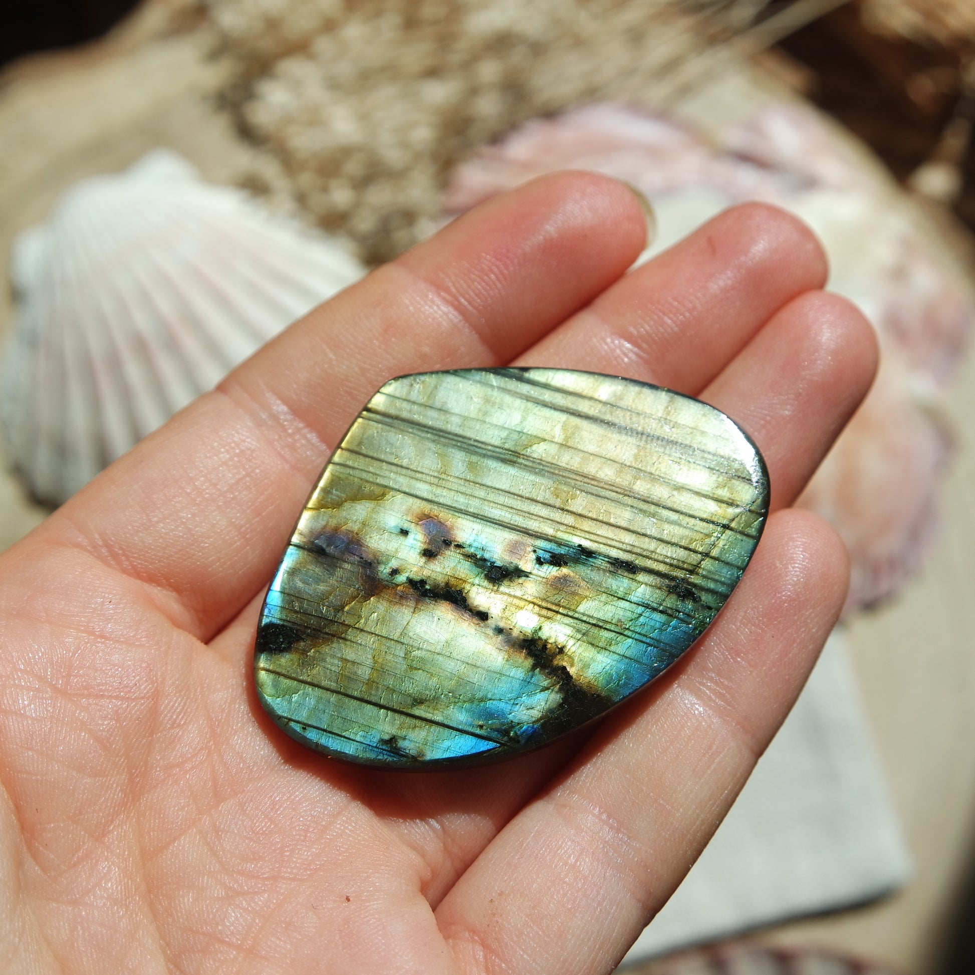 - Wasser: Labradorit ist nicht besonders wasserempfindlich, jedoch sollte er nicht längere Zeit in Wasser eingeweicht werden, um seine Farbintensität und strukturelle Integrität zu bewahren.
